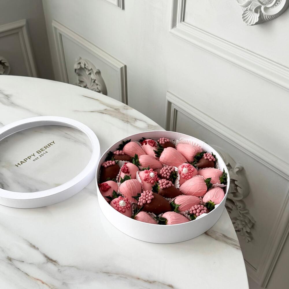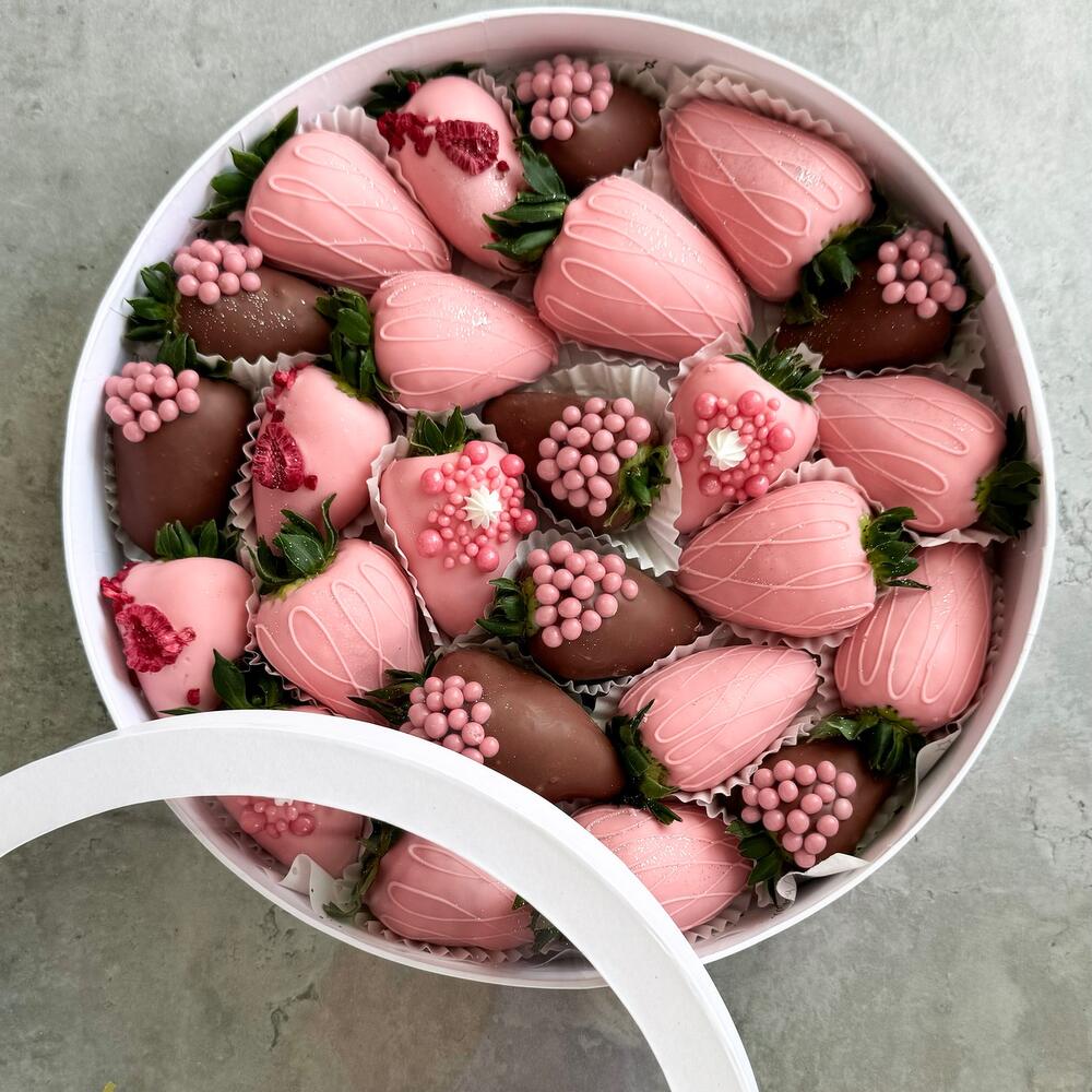 Вкуснейшая отборная клубника в белом и молочном бельгийском шоколаде с малиной и цветочками. Съесть лучше всего в течение первых 10-12 часов и хранить при температуре +10...+20 градусов. Следующие 12 часов хранить только в холодильнике при температуре +5...+10 градусов. Перед употреблением оставить при комнатной температуре на 10-15 минут. Срок годности свежих фруктов и ягод в шоколаде – 1 сутки.