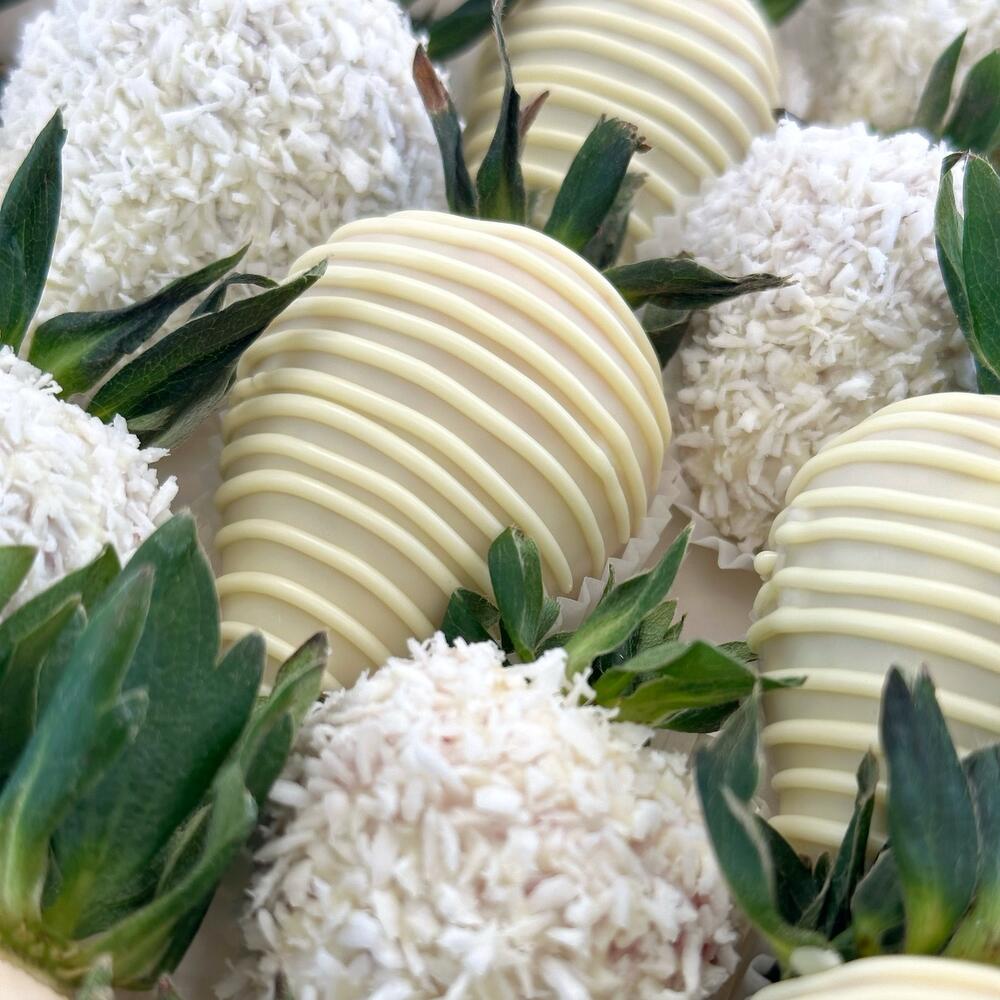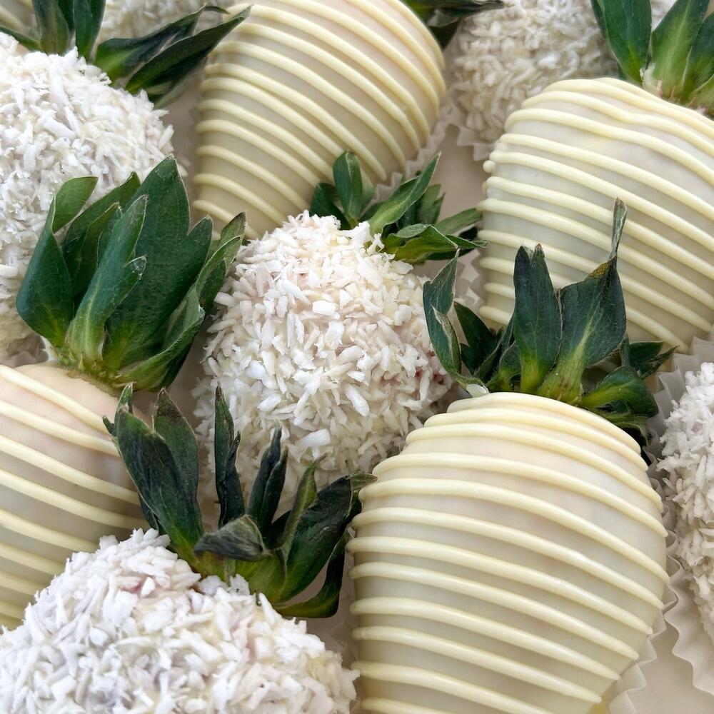 • Свежая клубника • Белый шоколад Callebaut (Бельгия)* • Кокосовая стружка * Сахар; Масло какао; Молоко цельное сухое; Какао тёртое; Эмульгатор; Соевый лецитин; Ваниль