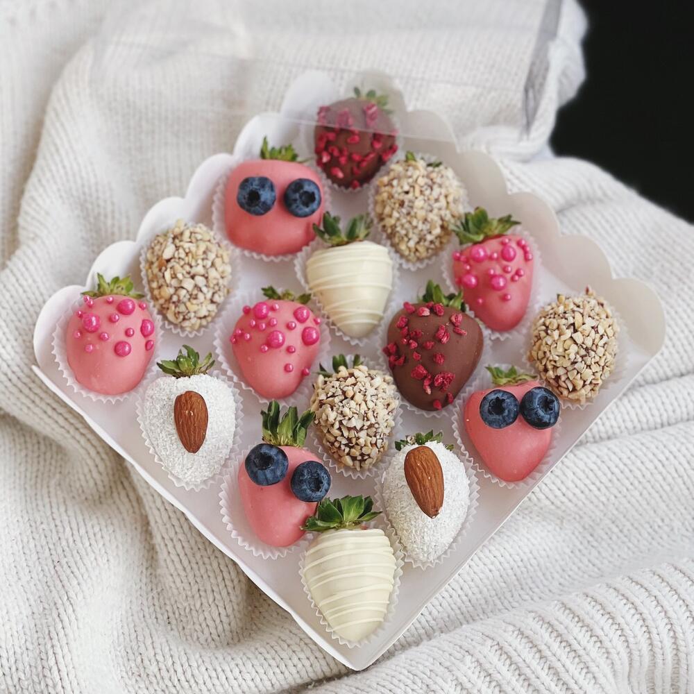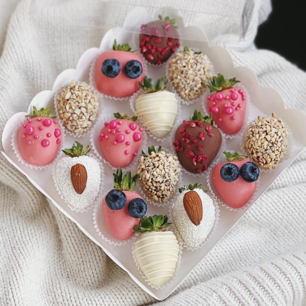 Изысканный набор клубники в шоколаде «Ягодное ассорти» состоит из 16 свежих ягод клубники. Белый и молочный бельгийский шоколад. В качестве украшения - свежая голубика, сублимированная малина, кокосовая стружка, цельный миндаль и хрустящие шарики. Идеальный вариант для того, чтобы признаться в своих чувствах или поздравить с днём рождения.❤️ Срок хранения - 24 часа, хранить в холодильнике.