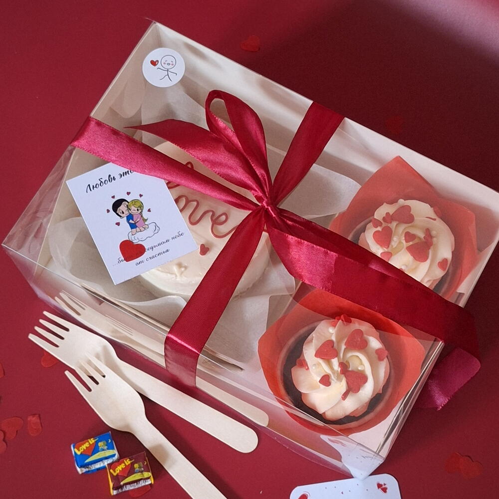 Комбо бенто love и 2 капкейка со сливочным кремом к 14 февраля
