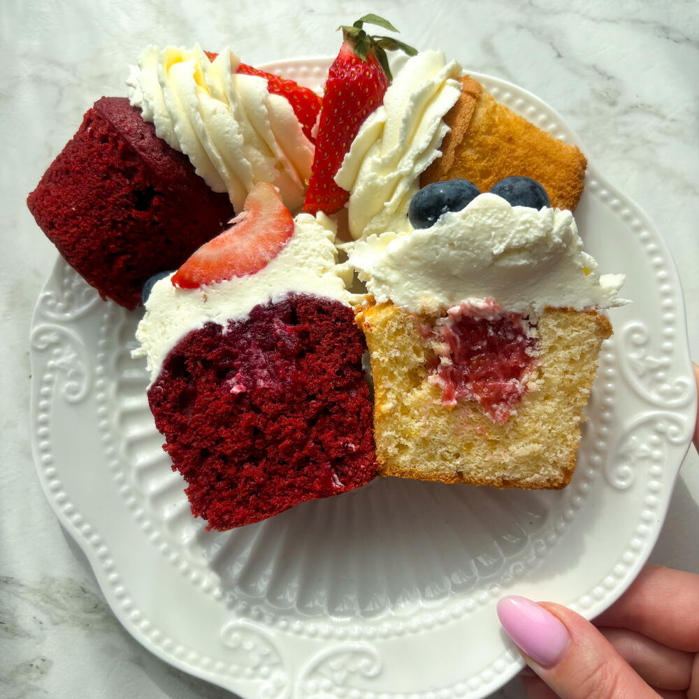Капкейки 2 вида в наборе: Лимонные коржи с клубникой: Творожный сыр, сливки, сахар, мука пшеничная, яйца, клубника, греческий йогурт, цедра лимона, сливочное масло, молоко, сгущенка, кукурузный крахмал, пищевой краситель, ваниль ⠀ Красный бархат с вишней: Творожный сыр, сливки, сахар, мука пшеничная, яйца, вишня, кефир, растительное масло, какао, сливочное масло, молоко, сгущенка, кукурузный крахмал, пищевой краситель ⠀ 3 вкуса тортиков на выбор состав: ⠀ 1️⃣ Красный бархат с вишней: Творожный сыр, сливки, сахар, мука пшеничная, яйца, вишня, кефир, растительное масло, какао, сливочное масло, молоко, сгущенка, кукурузный крахмал, пищевой краситель (нежные красные бисквитные коржи и кисленькая вишневая начинка - идеально для тех, кто не любит сильно сладко) ⠀ 2️⃣ Шоколадный молочный ломтик: Творожный сыр, сливки, сахар, мука пшеничная, яйца, растительное масло, какао, сливочное масло, молоко, сгущенка, пищевой краситель (для любителей шоколадных тортиков - в меру сладкий) 3️⃣ Морковный с грецким орехом и грушей: Творожный сыр, сливки, сахар, коричневый сахар, мука пшеничная, яйца, растительное масло, сливочное масло, морковь, груша, грецкие орехи, корица, мускатный орех, сгущенка, кукурузный крахмал, пищевой краситель, ванилин (более сладкий вариант: морковно-ореховые ароматные коржи, пряная грушевая начинка - создаст уютное, теплое настроение) ⠀ Срок годности 72 часа. ❄️Хранить в холодильнике при t +2 - +5 гр.