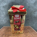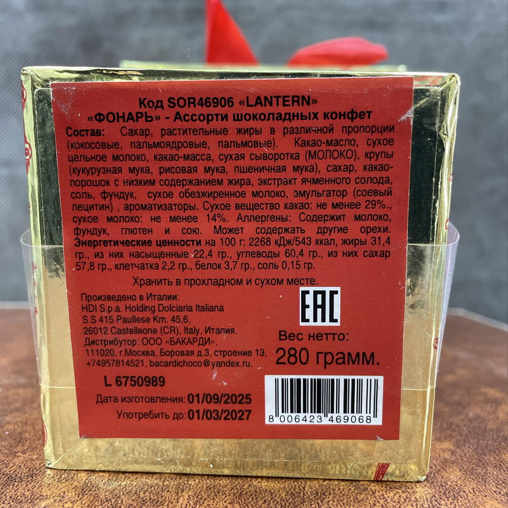Состав: Сахар, растительные жиры в различной пропорции(кокосовые, пальмоядровые, пальмовые). Какао-масло, сухое цельное молоко, какао-масса, сухая сыворотка (МОЛОКО), крупы (кукурузная мука, рисовая мука, пшеничная мука), сахар, какао- порошок с низким содержанием жира, экстракт ячменного солода, соль, фундук, сухое обезжиренное молоко, эмульгатор (соевый лецитин), ароматизаторы. Сухое вещество какао: не менее 29%., сухое молоко: не менее 14%. Аллергены: Содержит молоко, фундук, глютен и сою. Может содержать другие орехи. Энергетические ценности на 100 г: 2268 кДж/543 ккал, жиры 31,4 гр., из них насыщенные 22,4 гр., углеводы 60,4 гр., из них сахар 57,8 гр., клетчатка 2,2 гр., белок 3,7 гр., соль 0,15 гр. Хранить в прохладном и сухом месте.