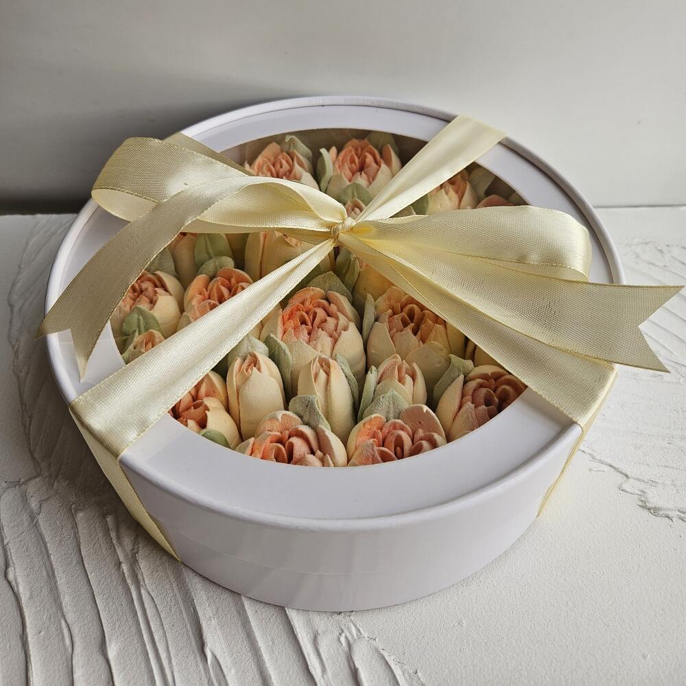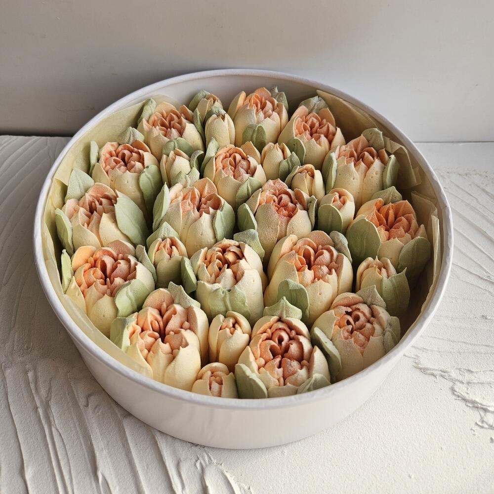 Забудьте всё, что вы знали о магазинном зефире! Наши тюльпаны – это 100% ручная работа из домашнего зефира, созданного специально для вас. ✨ Неповторимый Вкус и Текстура: Тает во рту: Нежная, воздушная текстура, не похожая ни на что, что вы пробовали раньше. Идеальный баланс сладости: в меру сладкий яблочный вкус. Только свежее: Мы готовим каждую партию зефирных тюльпанов только после вашего заказа, чтобы вы получили самый свежий, легкий и воздушный десерт. На открытом воздухе зефир со временем покрывается тонкой сахарной корочкой, постепенно напоминая безе – это естественный процесс, подчеркивающий его натуральность. 🎁 Подарок, Который Запомнится: Эти невероятно вкусные, красивые и ароматные зефирные цветы станут незабываемым подарком. Каждая коробочка или букет собирается вручную с душой и вниманием к деталям! Что входит в ваш заказ: 1. Изящная коробка, наполненная восхитительными зефирными тюльпанами ручной работы. 2. Нарядная атласная лента, добавляющая шарма. 3. Милая открытка (дизайн из наличия на момент вашего заказа). 4. Удобный пакет для транспортировки вашего сладкого подарка. Важная информация: Цвет: Обращаем ваше внимание, что оттенок цветов на экране вашего устройства и вживую может незначительно отличаться из-за индивидуальных настроек цветопередачи. Персонализация (по возможности): Цвет ленты, оттенок упаковки и вид открытки могут или оговариваться индивидуально. Мы всегда стремимся, чтобы ваши ожидания совпали с реальностью! 🌿 Условия Хранения для Максимальной Свежести: Срок годности: До 14 суток в герметичной упаковке. Температура: Хранить при температуре от +2 до +25°C. Место: В герметичной коробке или контейнере, вдали от прямых солнечных лучей и источников тепла. 💖 Идеально для Любого Повода: Свадьба, день рождения, юбилей, 8 Марта, День Учителя, или просто чтобы сделать приятный сюрприз любимой маме, бабушке, подруге, девушке, коллеге – наши зефирные тюльпаны подарят улыбку и восторг! 🌟 «ЗЕФИРНИК» – Ваш Эксперт по Зефирным Цветам! Мы с гордостью изготовили уже более 20 000 тюльпанов и заслужили рейтинг 5 звезд на других площадках. Теперь наше нежное мастерство доступно и на Flowwow! Закажите сейчас и подарите незабываемые эмоции!