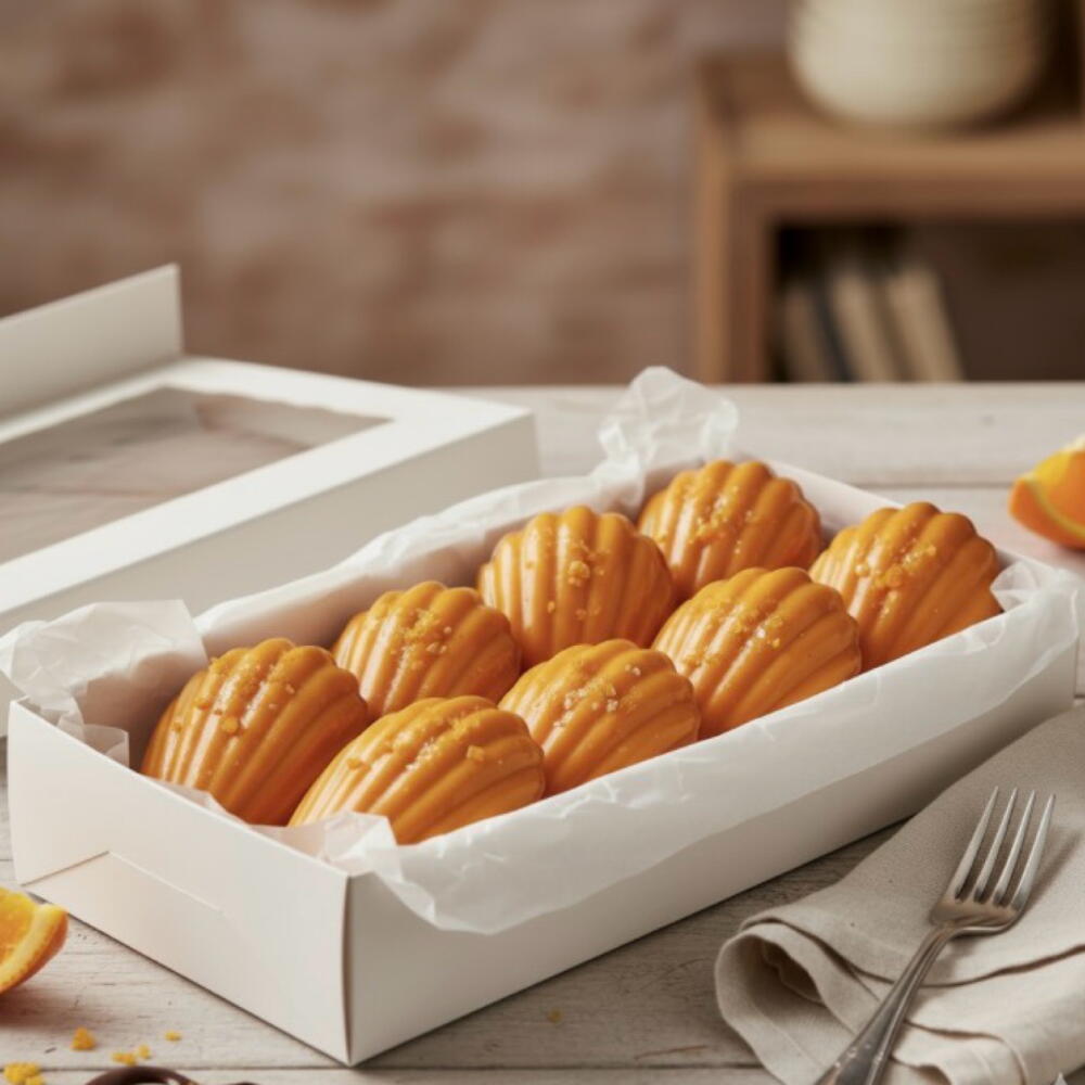 Откройте для себя нежность и изысканность французских Мадленов, созданных вручную по классическому рецепту. Вкус каждого пирожного — это идеальный баланс цитрусовой свежести и шоколадной сладости.