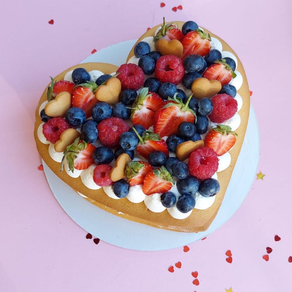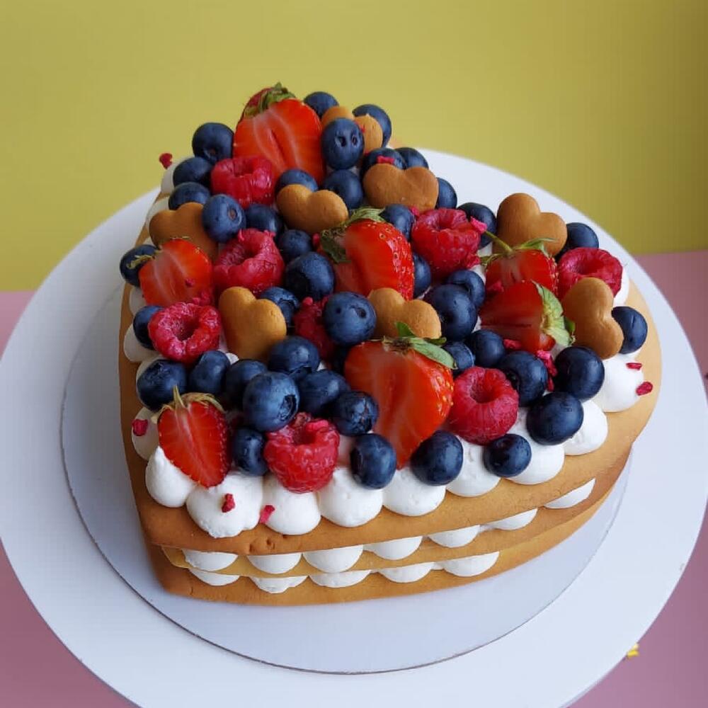 Медовый торт - сердце с ягодами 1,2 кг, подарок любимой, любимому, на день рождения, для счастья