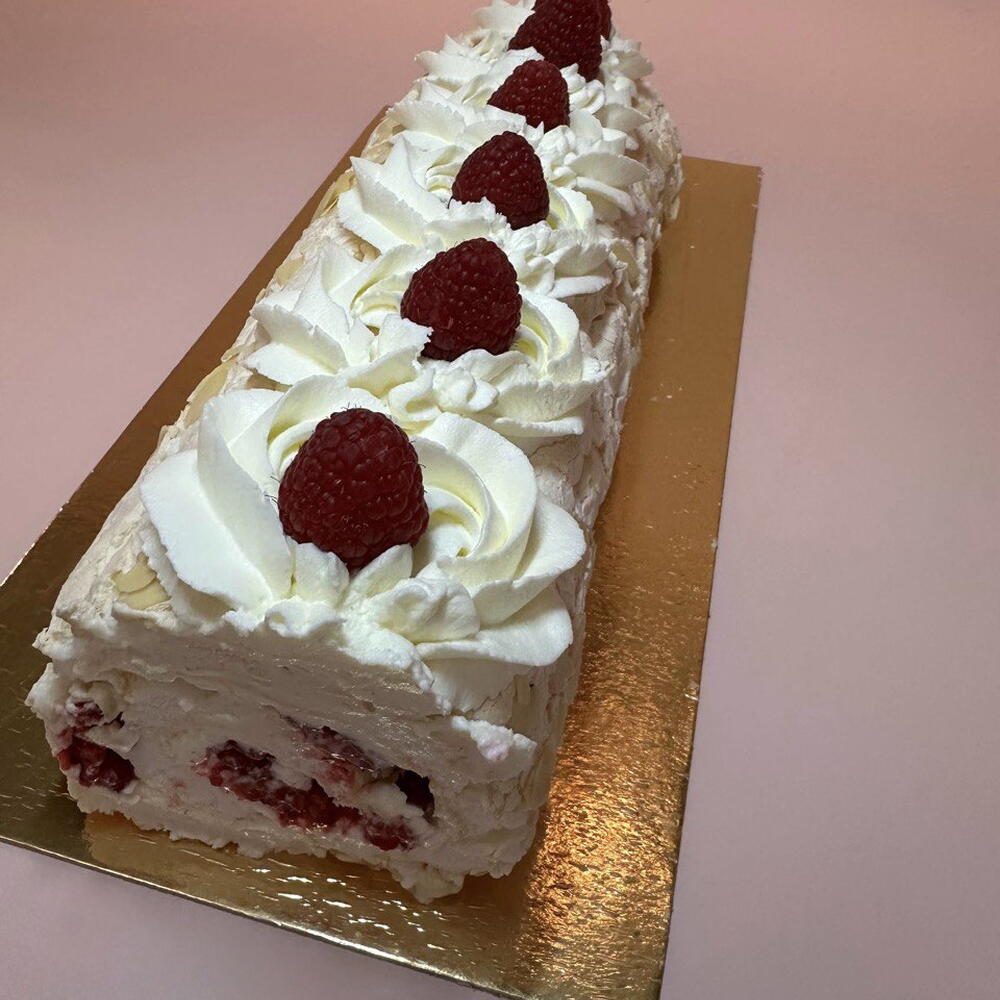 Этот рулет — кусочек лета на вашей тарелке. Воздушная меренга, как лёгкое облачко. Начинка — прохладное и нежное облако из маскарпоне, в котором прячутся, словно драгоценные самоцветы, сочные ягоды малины. Сладкий, но нежный, ягодный, но изысканный. Он освежит, порадует и подарит ощущение праздника. Десерт для тех, кто ценит лёгкость и истинный вкус натуральных ингредиентов. Срок годности не более 2 суток. Хранение только в холодильнике, в закрытой упаковке или контейнере.