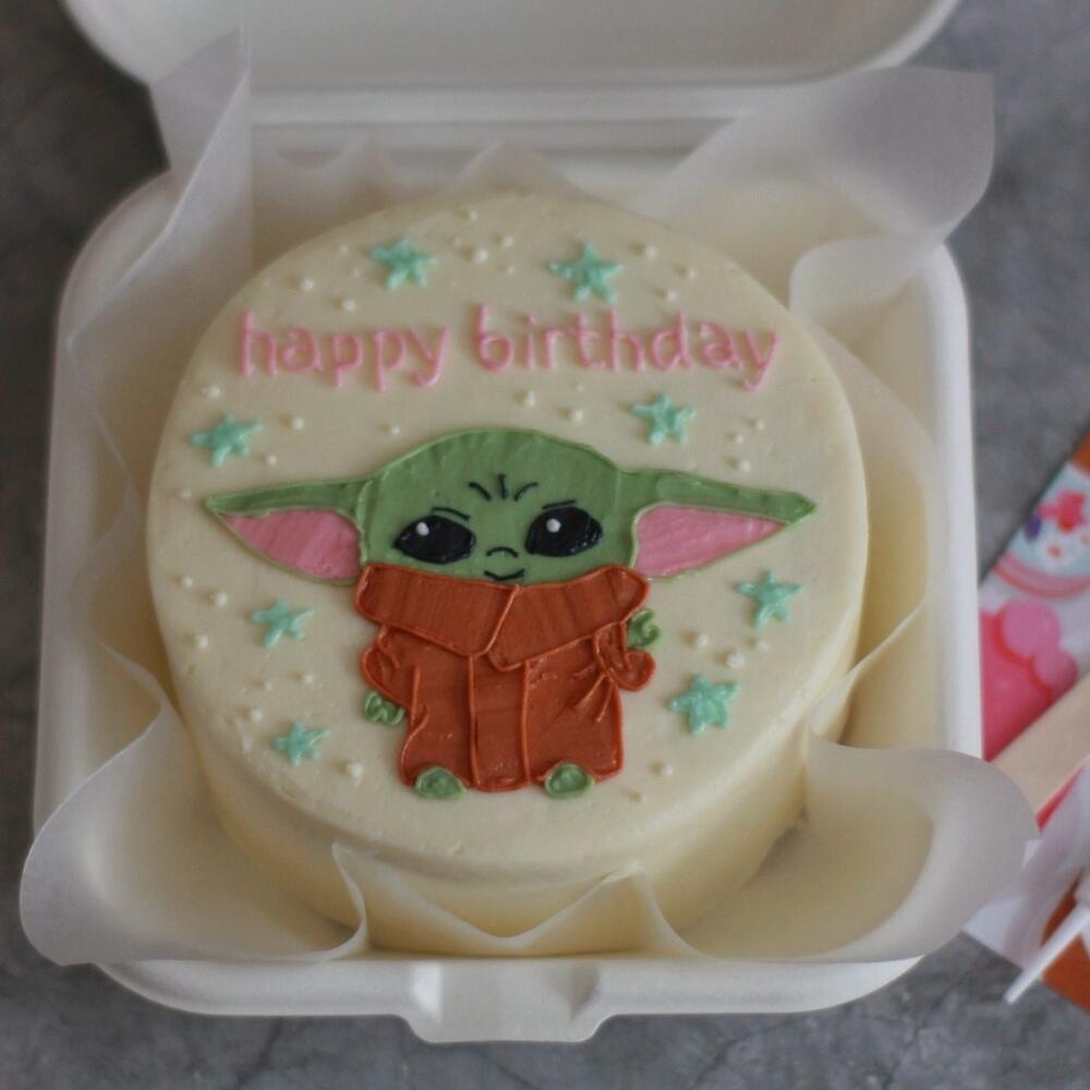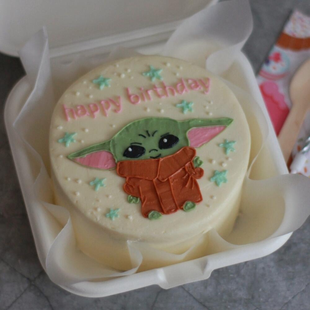 Трендовый минидесерт на 1-2 порции для любителя киносаги Звёздные войны. Начинка на выбор: 1. Ягодный йогурт - ванильный бисквит с нежным кремом на основе йогурта и ягодной прослойкой 2. Вишневый бархат - сочные бисквиты красного цвета в компании терпкой вишни и ванильного крема 3. Шоколадное мороженое - насыщенный шоколадный бисквит с крем-муссом на темном шоколаде с карамелью и арахисом * Пожалуйста, укажите выбранную начинку в комментарию к заказу или в чате с магазином. По умолчанию идёт начинка Вишневый бархат Цвет надписи и элементов декора можно изменить, просто сообщите нам о своем желании. Бенто-торт упакован в коробку из биоразлагаемого сахарного тростника. В комплекте свечка для настроения и ложечка для дегустации. Вес бенто-торта 400г (±20г в зависимости от начинки). Хранить в холодильнике при температуре +2...+5°С не более 60 часов.