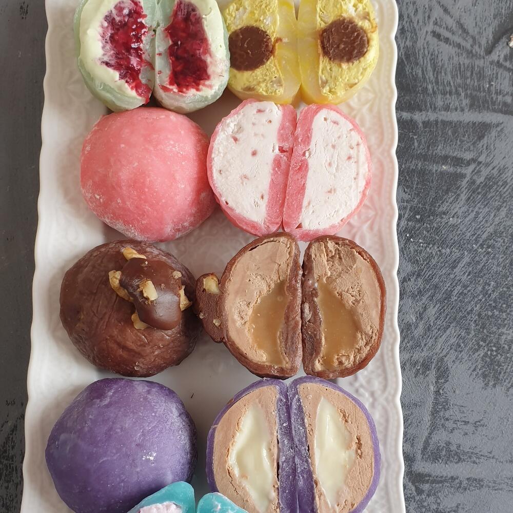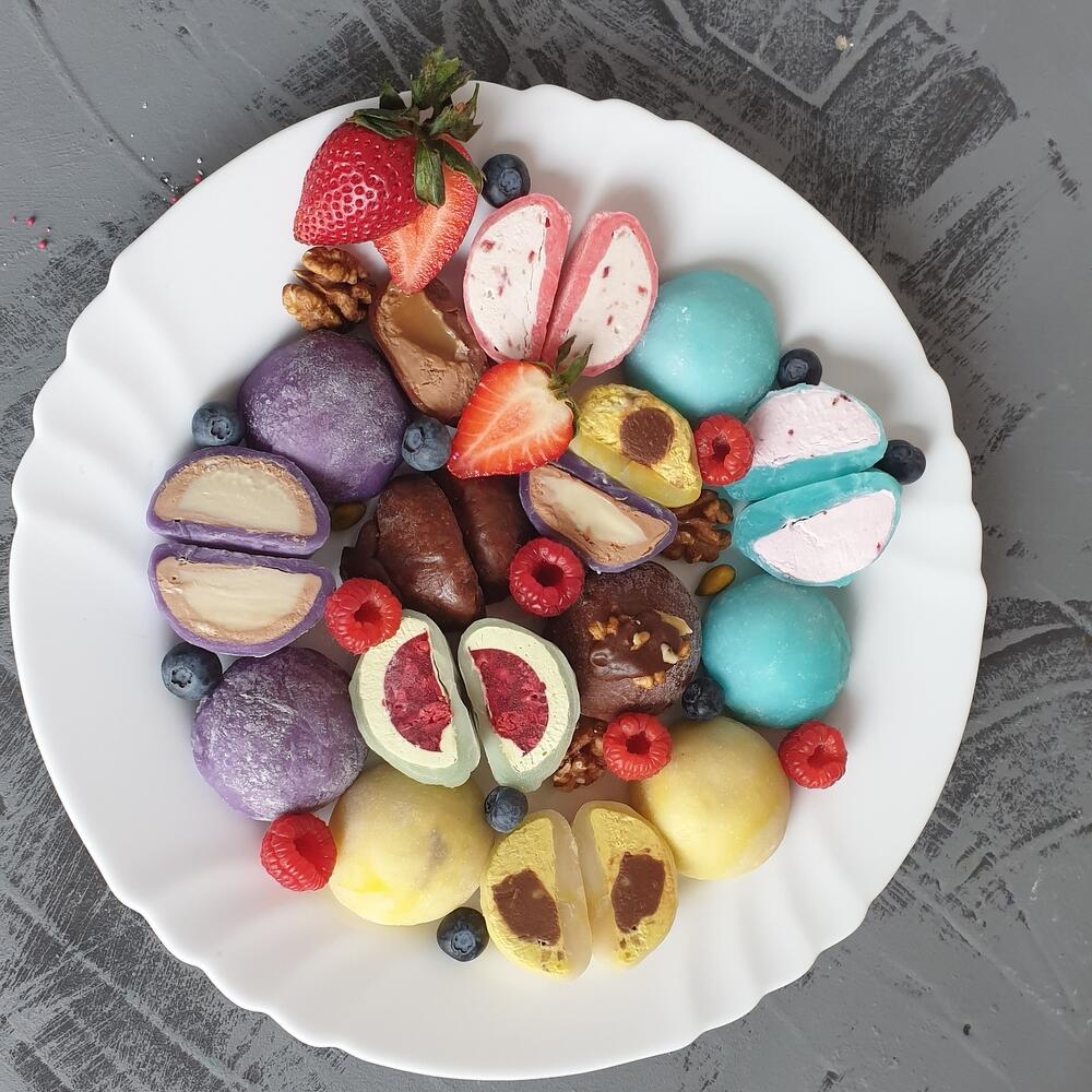 Моти все больше набирает свою популярность. Нет человека, который бы не хотел попробовать этот необычный десерт. Уникальность его ещё и в том, что в нем нет глютена и нет яиц. Он идеально подходит, у кого аллергия на пшеничную муку и яйца. Разнообразные вкусы, каждый по своему интересен и необыкновенно вкусный и очень нежный: 1. Малина-фисташка 🍈 2. Смородиновый щербет 🫐 3. Манго-ваниль 🥭 4. Карамельный Сникерс 🥜 5. Клубничное мороженое 🍓 6. Рафаэлло-шоколад 🥥🍫 7. Банан-орех-шоколад 🍌🌰🍫 8. Манго-клубника 🥭🍓 9. Лимон-кофе🍋☕ 10. Тирамису🍮 11. Черника-смородина 🫐🍵 12. Абрикос-манго-Амаретто 🍑🍸 13. Вишнево-шоколадный🍒🍫 14. Брусничный-ванильный 15. Фисташка-манго.