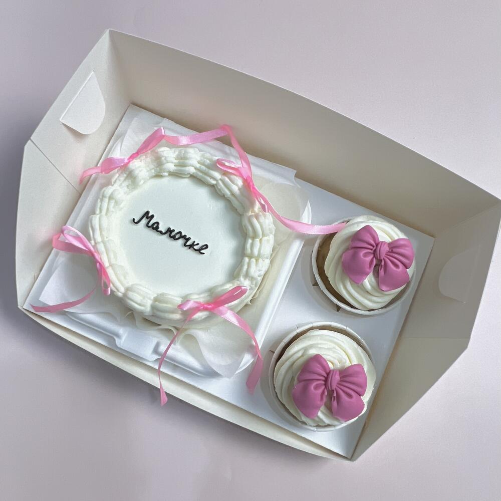 Бенто торт и 2 капкейка , в подарок маме В комплекте: тортик, ложечка, свечка,пакет и любовь кондитера Хранить в холодильнике 48 часов.