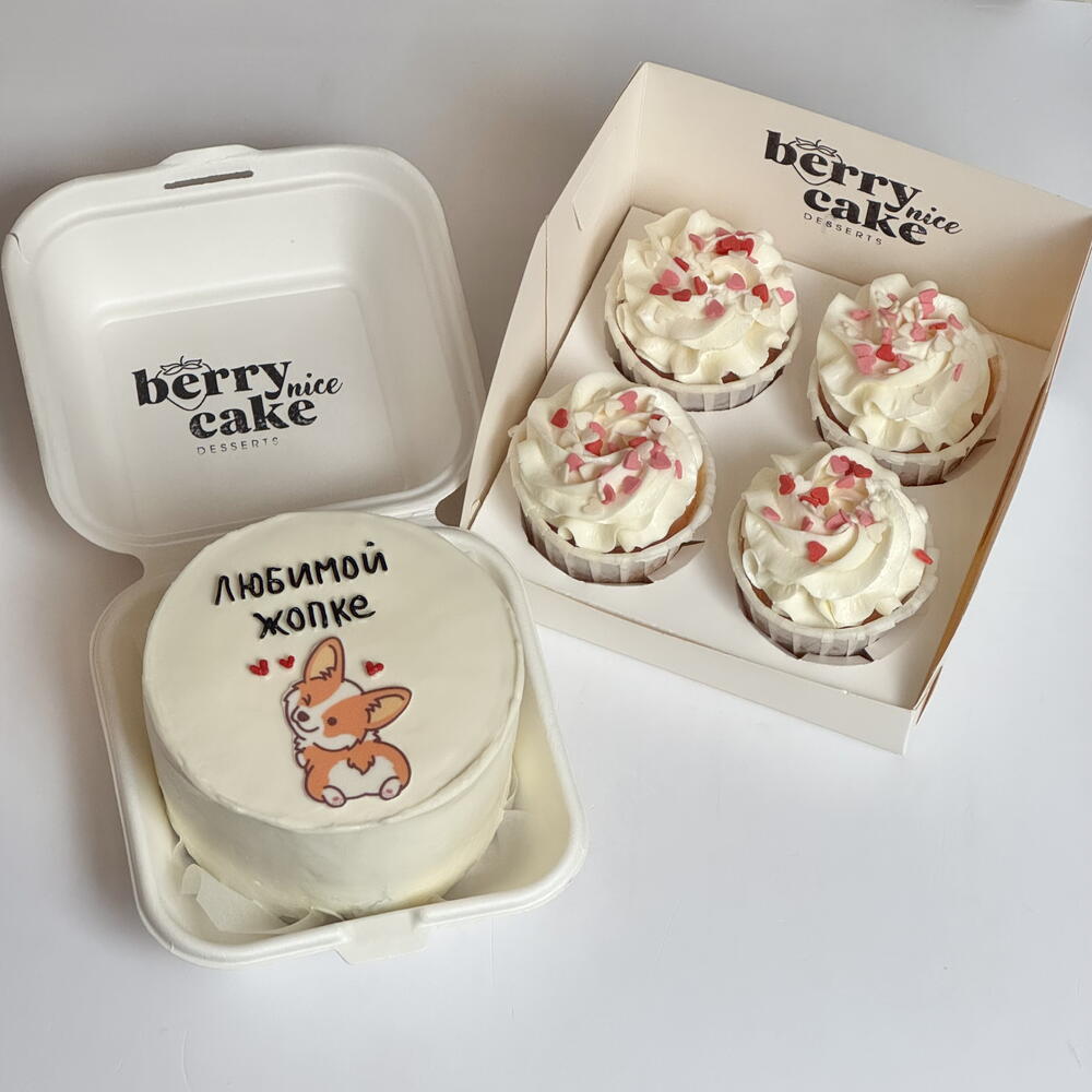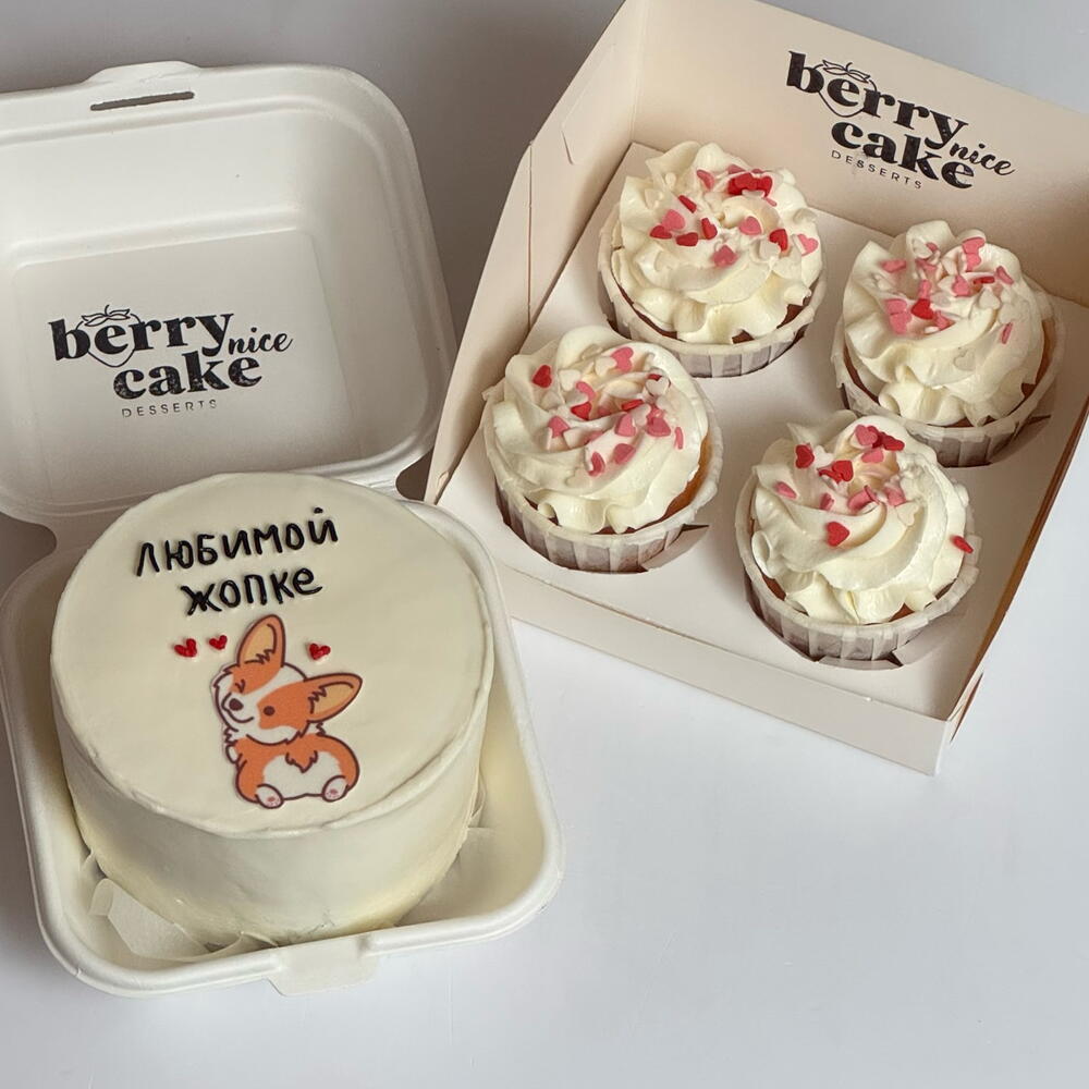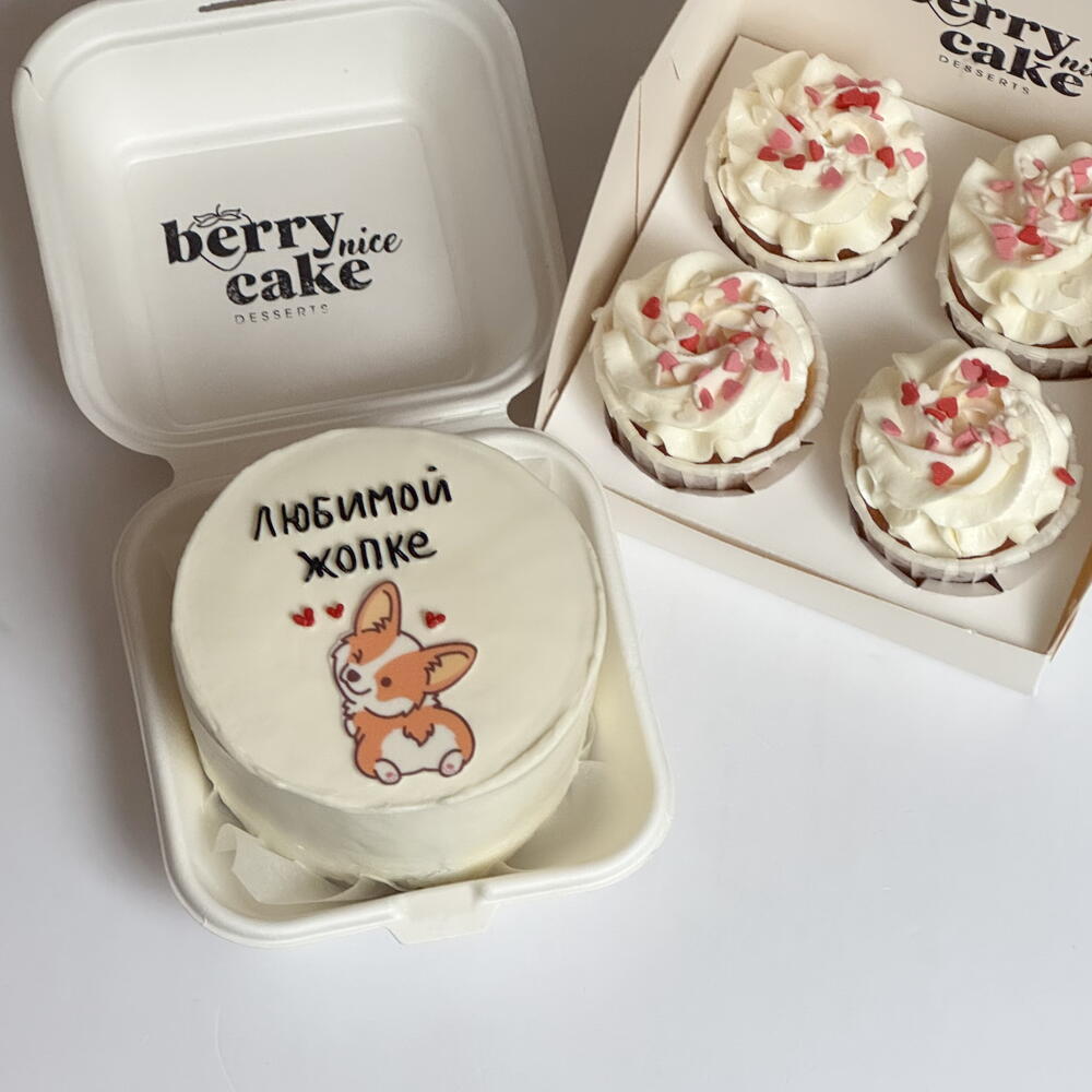 Набор бенто торт и 4 капкейка собачка корги жопка