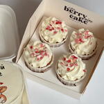 Бисквитный с клубникой: Мука пшеничная в/с, сахар, яйцо куриное, крахмал кукурузный, молоко коровье, масло сливочное, сыр творожный, сливки 33%, клубника, пектин, желатин. Шоколадный с вишней: Мука пшеничная в/с, сахар, яйцо куриное, крахмал кукурузный, молоко коровье, какао порошок, масло сливочное, сыр творожный, сливки 33%, вишня, пектин, желатин. Шоколадный с шариками: Мука пшеничная в/с, сахар, яйцо куриное, крахмал кукурузный, молоко коровье, какао порошок, масло сливочное, сыр творожный, сливки 33%, хрустящие шарики Callebaut Mona Lisa. Капкейки Ваниль-клубника: Мука пшеничная в/с, сахар, яйцо куриное, крахмал кукурузный, молоко коровье, масло сливочное, сыр творожный, экстракт ванили, сливки 33%, клубника.