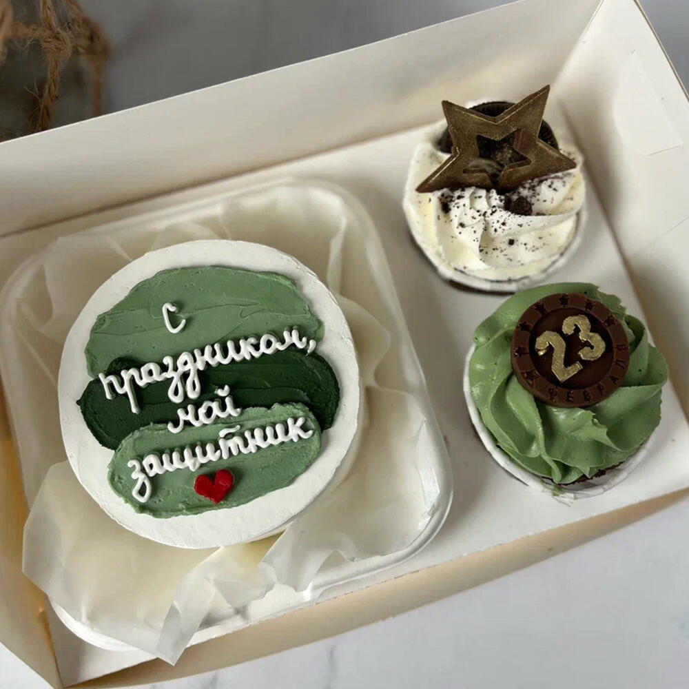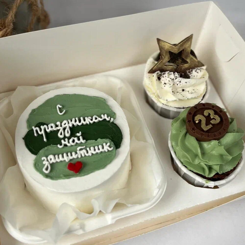 Набор десертов на 23 февраля бенто торт и 2 капкейка