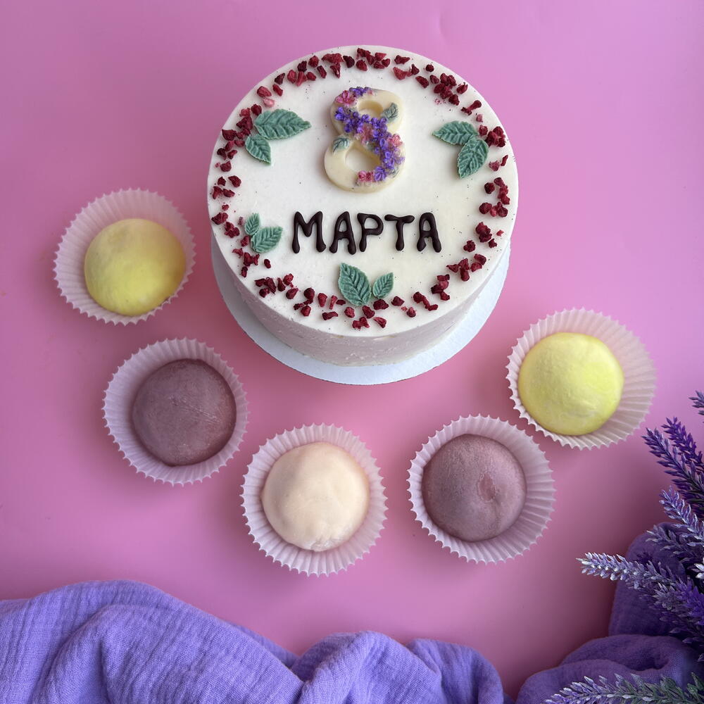 Тортик в наборе с японским десертом моти идеально подойдёт для праздничного стола в честь 8 марта! Моти в наборе алкогольные!! Вкусы: 2 маракуйя - просекко 2 Апероль 1 шоколад - коньяк 💜 Точно удивит – нежный десерт, который покорит с первого кусочка. 💜 Натуральный состав – только лучшие ингредиенты, без искусственных добавок. 💜 Высшее качество – мы создаем мороженое, в которое невозможно не влюбиться. Мы упакуем микс в термопакет для транспортировки мороженого, чтобы он не растаял и доехал полностью замороженным ❄️🧊 Наше производство существует с 2017 года - все мороженое производится на безопасном оборудовании и имеет декларации качества. Хранить торт-мороженое важно в морозилке при -18, перед едой дать подтаять при комнатной температуре 10 - 15 минут. С любовью, команда Лапландии 💜