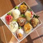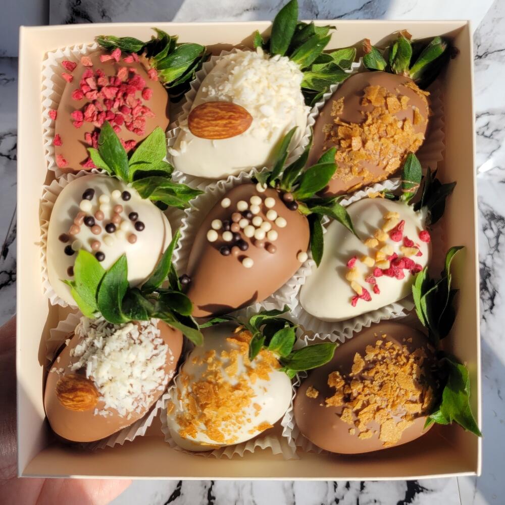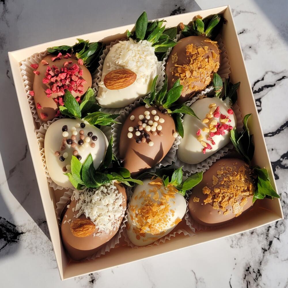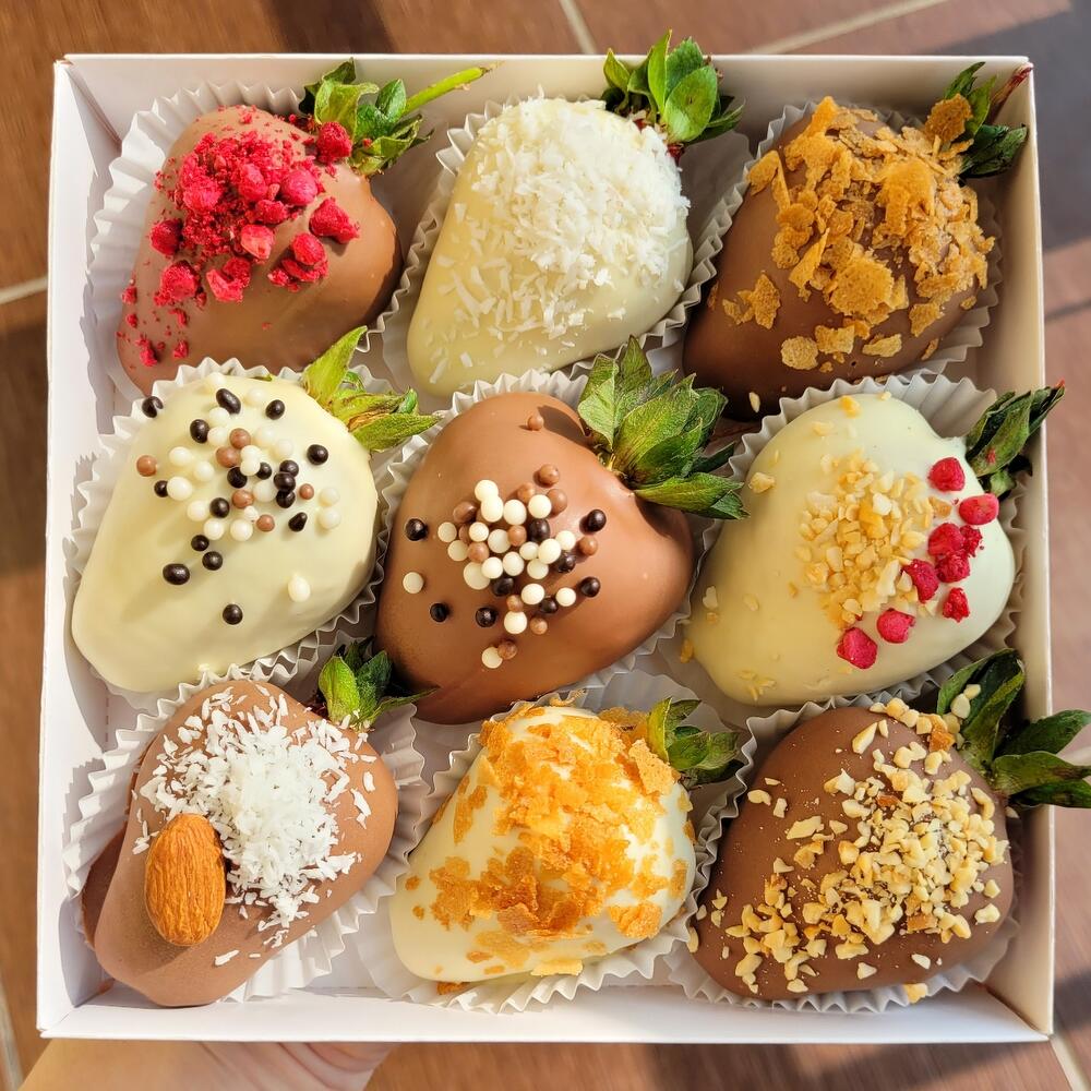 Свежая клубника молочный шоколад белый шоколад сублимированная малина арахис дроблённый кондитерские посыпки MIX кокосовая стружка вафельная крошка миндаль