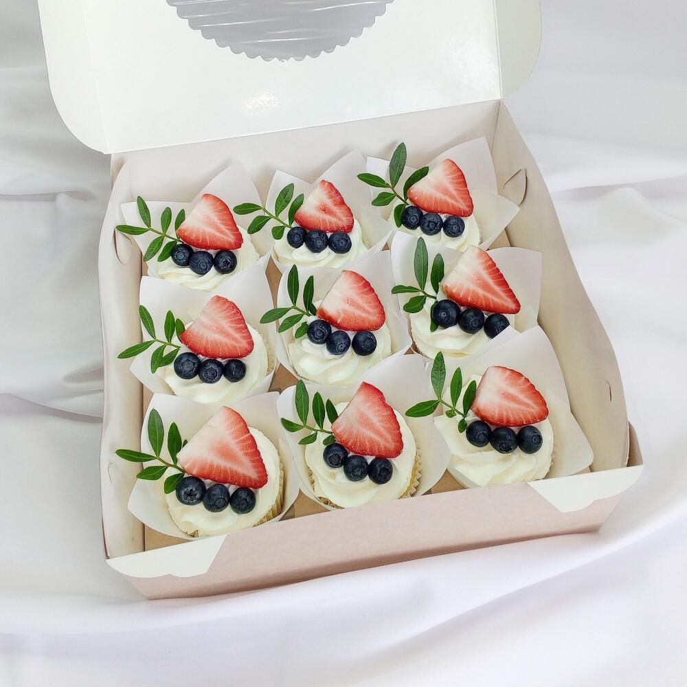 Нежные сливочные капкейки с клубничной начинкой. В наборе 9шт, упакованы в коробочку. Варианты начинок можно выбрать при оформлении заказа 🌹
