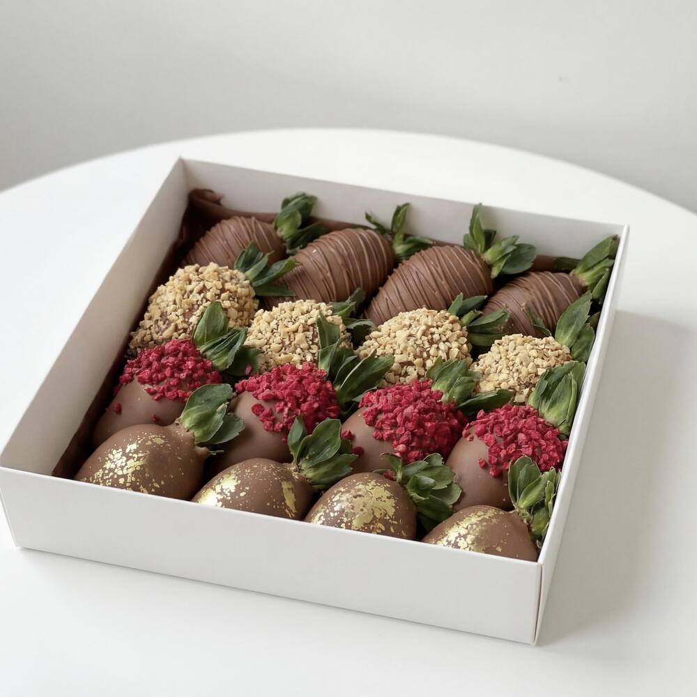 Подарите незабываемые эмоции и эстетическое наслаждение! Наш набор — это идеальное сочетание отборной, крупной садовой клубники и премиального бельгийского шоколада. Каждый десерт создается вручную непосредственно перед доставкой, чтобы вы получили максимально свежий и ароматный продукт. Свежайшая клубника: Мы используем только сладкие сорта с плотной текстурой. Премиальный шоколад: Нежный бельгийский молочный шоколад с бархатистым вкусом. Срок хранения клубники в шоколаде составляет 24 часа при температуре от +2 до +10°C. Мы рекомендуем насладиться десертом в первые 12 часов после покупки, чтобы ощутить всю полноту вкуса свежей ягоды. Перед употреблением рекомендуем подержать 15 минут при комнатной температуре для более мягкого вкуса шоколада. Упаковка: Набор доставляется в стильной белой корочке с прозрачным окном, перевязанной атласной лентой. Дополнительно бережно упаковываем в крафт-пакет для безопасной транспортировки.