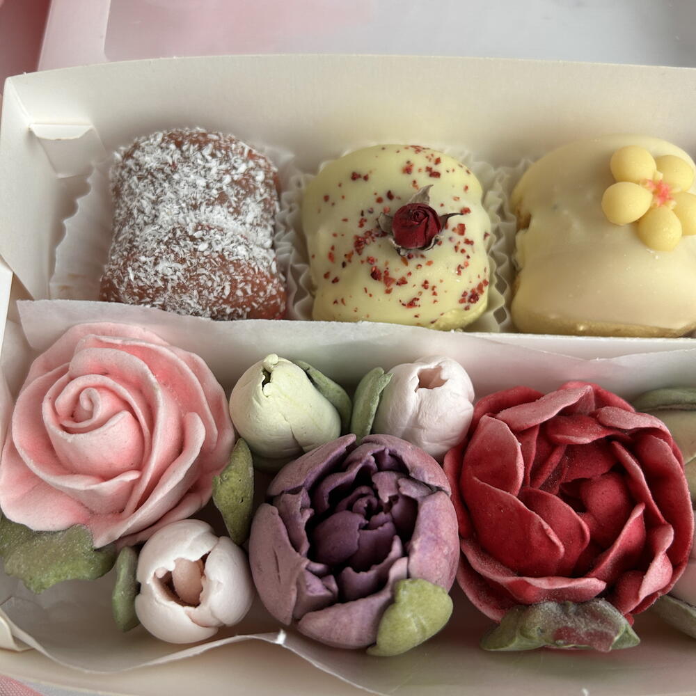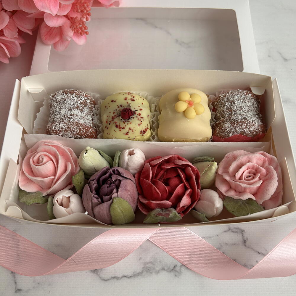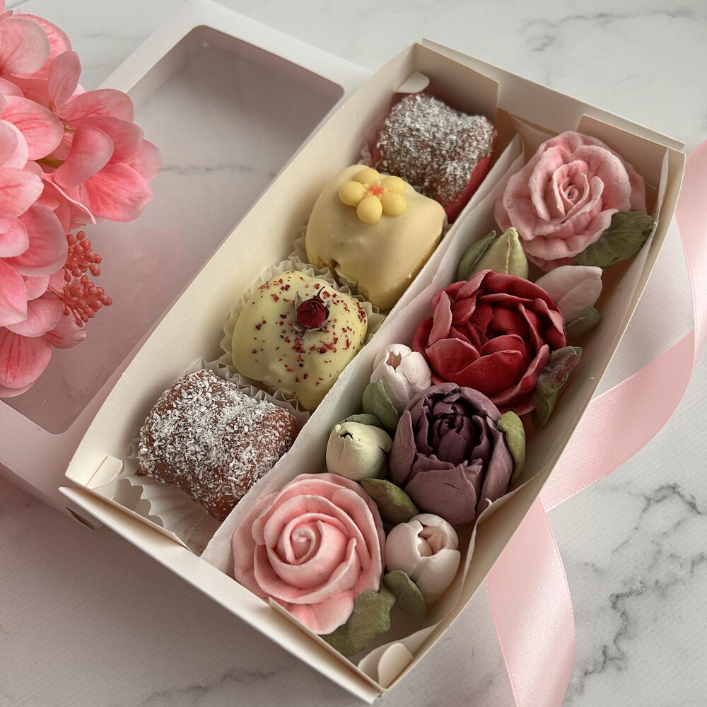 Набор макарон 3 вкуса и цветы из зефира/ Сладкий подарок на 8 марта