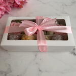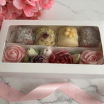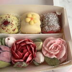 Подарочная коробочка пирожных макарон и цветов из зефира. В данной коробочке собраны пухлые французские макарон с ганашем на белом и молочном шоколаде. В коробочке 4 пирожных макарон- 2 с начинкой баунти, 1 с начинкой мохито,1 с начинкой мак-лимоном. Состав полностью натуральный. В составе макарон мохито- ганаш с мятой и лаймом на белом шоколаде с клубничной начинкой в центре. В составе макарон мак-лимон - лимонный ганаш с маком на белом шоколаде с лимонным курдом в центре. В составе макарон баунти ганаш на молочном шоколаде с кокосовым пюре, в центре кокосовая начинка. Цветы из зефира с пониженным содержанием сахара с натуральным составом на основе яблочного пюре, каждый цветок сделан вручную, с любовью. Коробочка перевязана атласной ленточкой, что делает набор праздничным. Хранение в холодильнике -3 дня для макарон и 10 дней для зефира. Зефир можно хранить и в герметичном контейнере на столе.