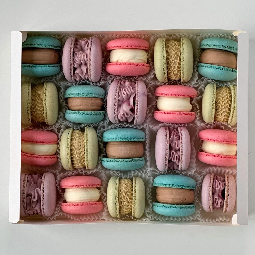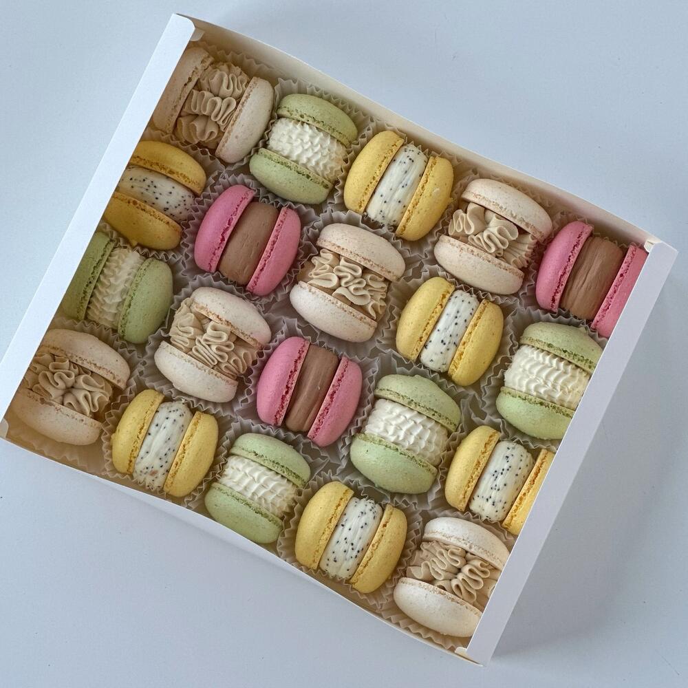 Нежнейшие безглютеновые пирожные макарон с начинками на основе бельгийского шоколада Совершенно не похожи на то, что вы могли пробовать раньше - не приторные с яркой начинкой и вкусом миндаля, буквально таят во рту Набор формируется из начинок в наличии Набор упакован в стильную коробку с атласной лентой🎁 Срок годности изделия - 96 часов