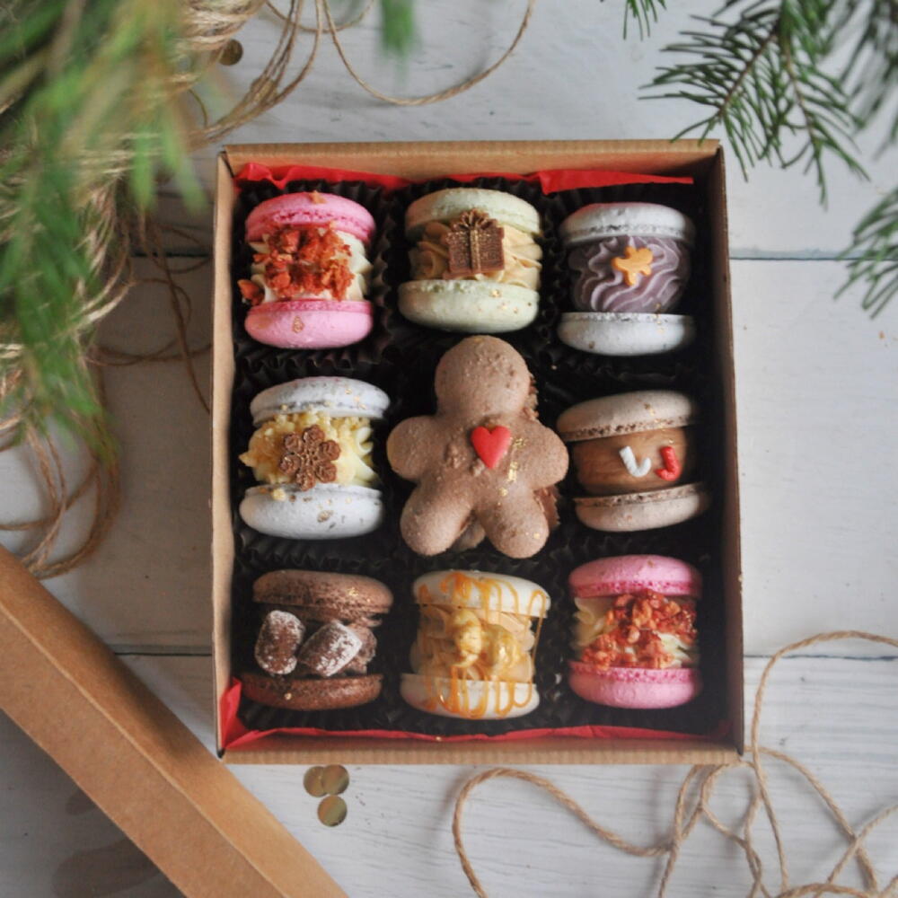 9 толстеньких, нежных, мягких макарон для вас и ваших любимых ❤️ В наборе 8 круглых макарон и один в форме человечка с сердечком на груди Вкусы в наборе (можно выбрать, просто пропишите нужные вкусы в комментарии к заказу): Тирамису, Фисташка-малина, Яблочный пирог, Лимонный чизкейк, Шоколадный чизкейк с нутеллой, Ванильный пломбир с клубникой, Крем-брюле, Три шоколада, Черничный чизкейк, Пряный какао Цвета макарон и декор могут немного отличаться Набор можно хранить в холодильнике в закрытой упаковке, в течение 3 суток. Инструкция по хранению со сроками годности прилагается к набору👌🏼