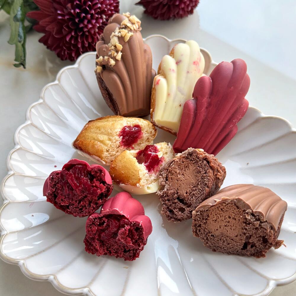 Масло сливочное 82,5%, мука высшего сорта, яйца, молоко, мед,разрыхлитель,какао порошок,соль,сахар,кокосовая стружка, пищевой краситель, орех фундук, сублимированная клубника Белый шоколад callebaut(Сахар,масло какао,сухое цельное молоко, эмульгатор,лецитин,ваниль) Молочный шоколад callebaut (Сахар,масло какао,сухое цельное молоко, тертое какао, эмульгатор,лецитин,ваниль)