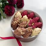 Набор из печенья 12 шт ( 3 вкуса) Цветок орхидеи из шоколада Топпер акриловый Мамуле (можно заменить на С днем рождения )