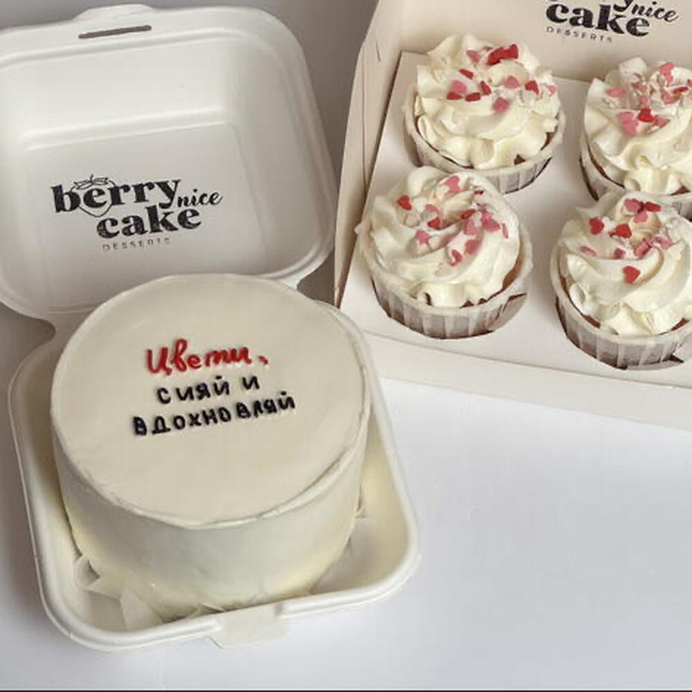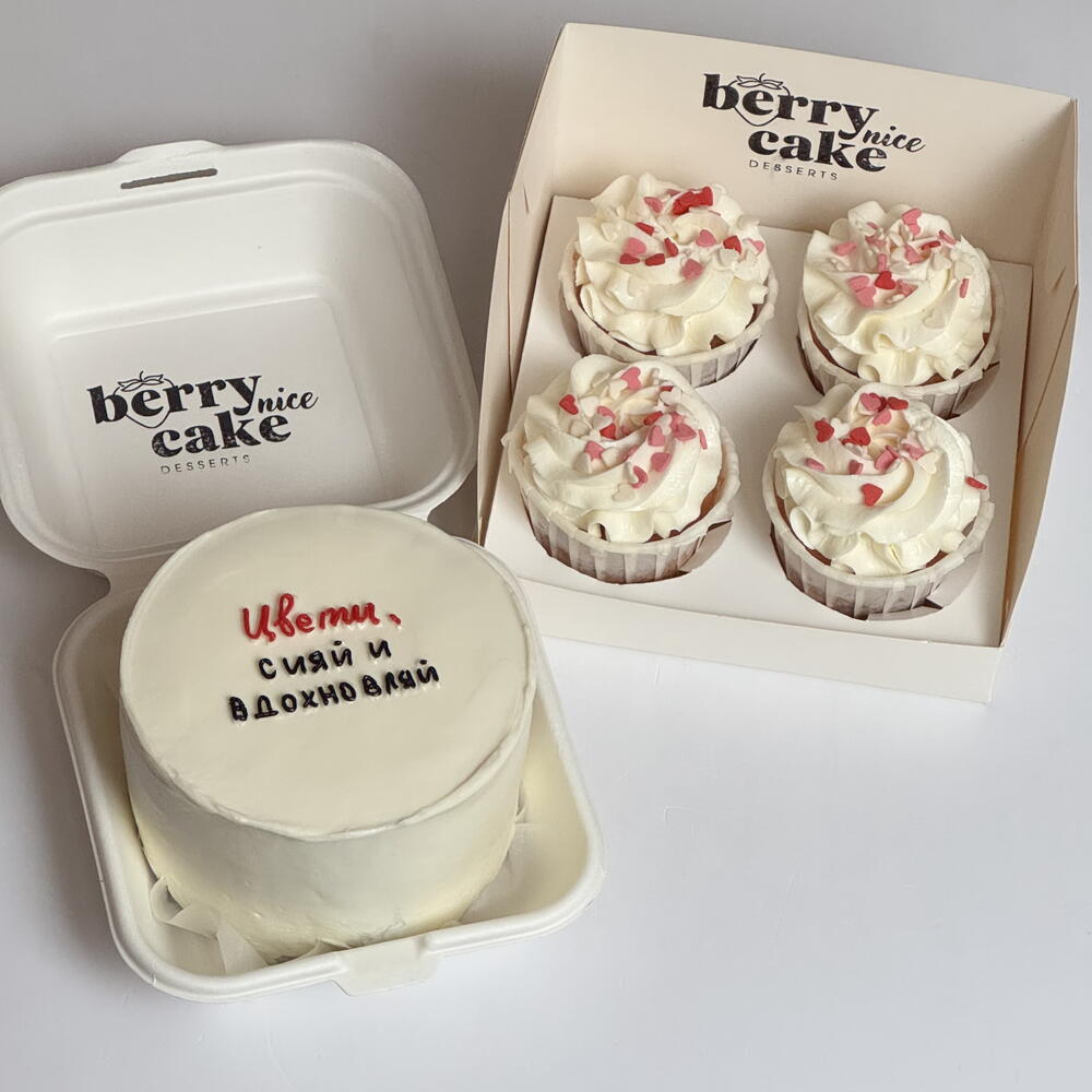 Набор бенто торт и капкейки 4 шт с днем рождения маме подруге сестре девушке