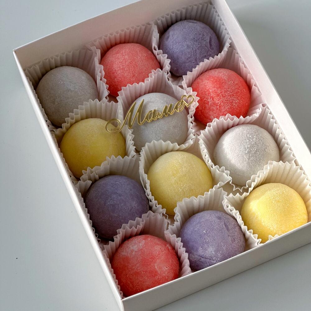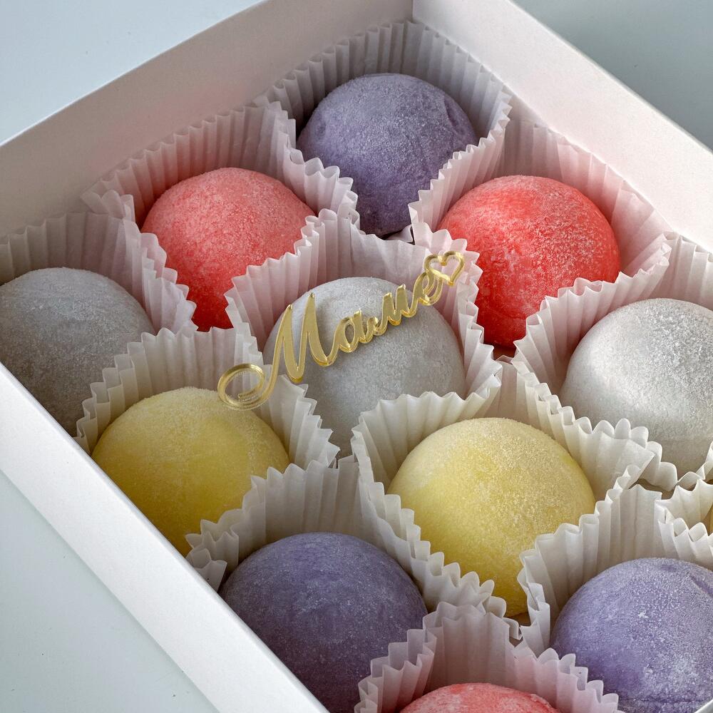 Набор пирожных моти 12 шт с топпером «Маме»