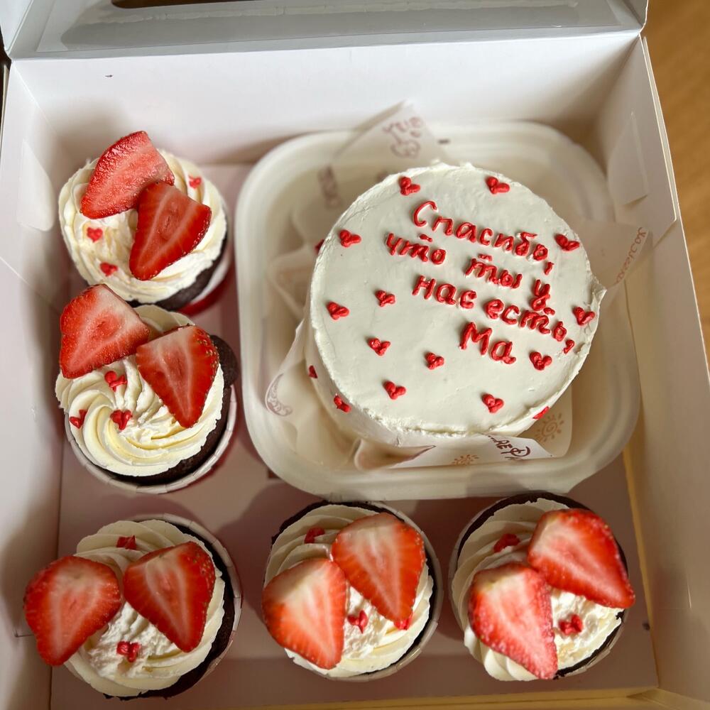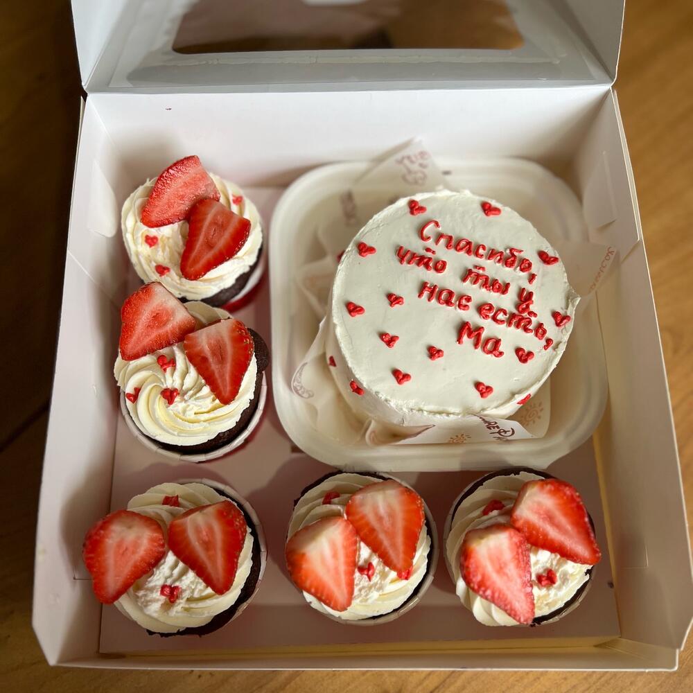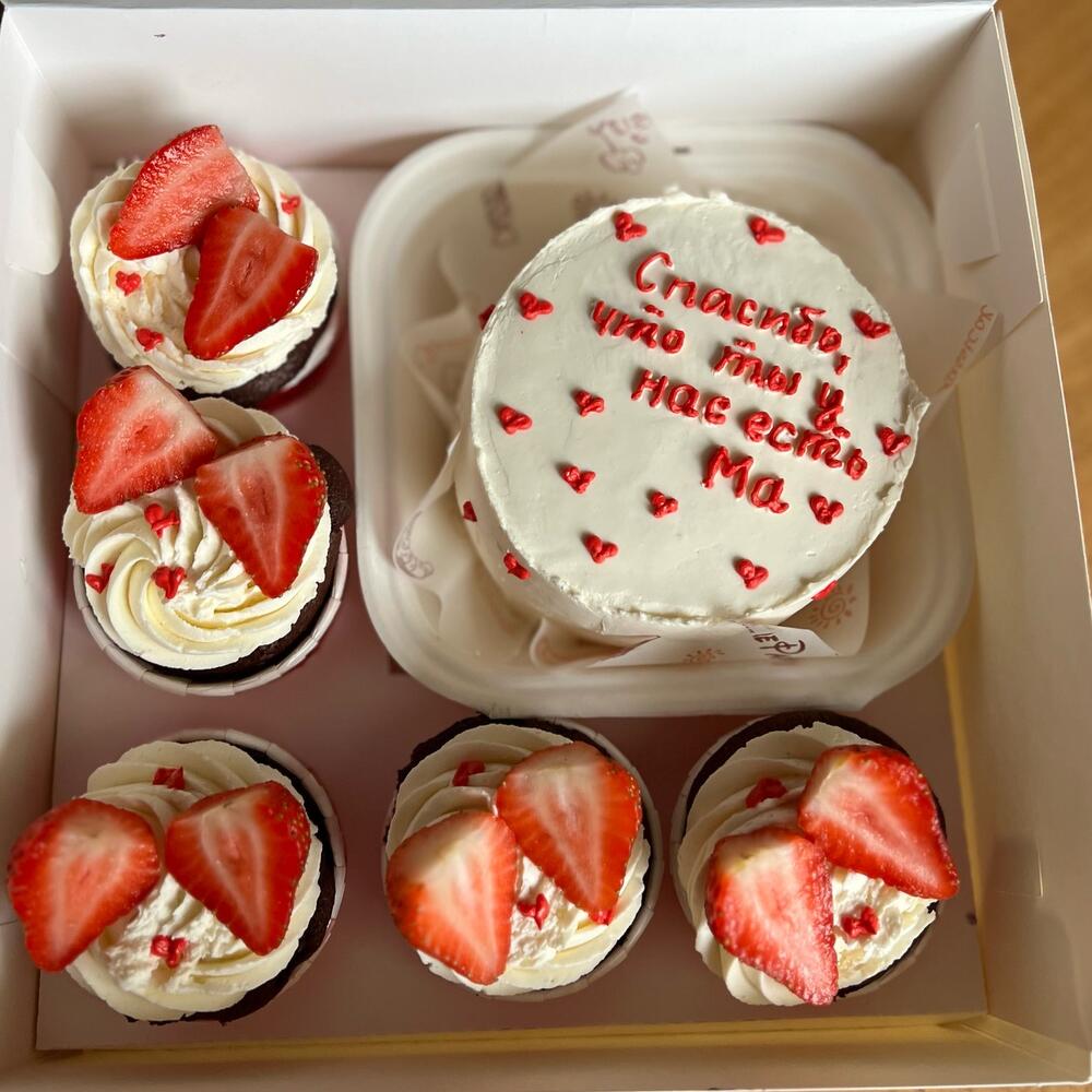 Набор сладостей на любой праздник. В набор входит : 1 Бенто тортик 5 капкейков Дизайн и начинку можно изменить, пишите при заказе .