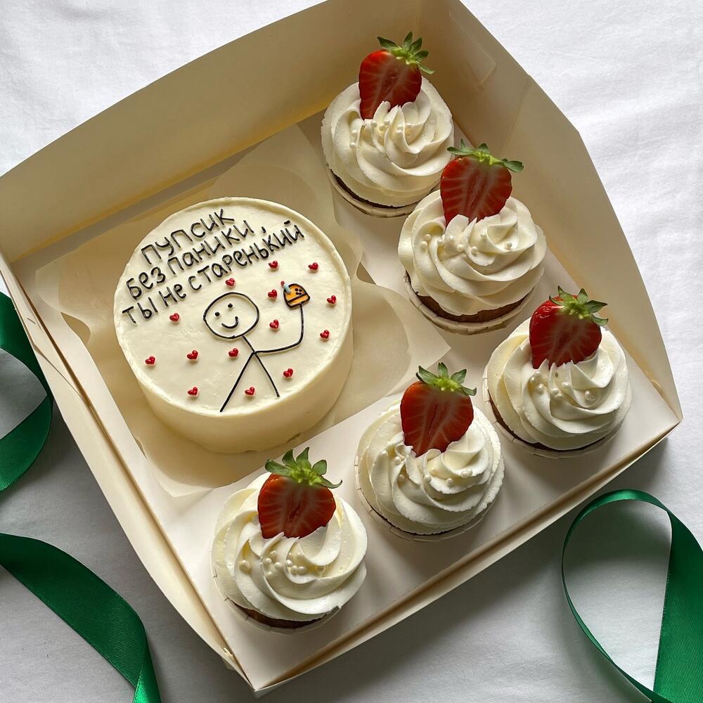 Стильный набор с минималистичным декором идеально подойдут для поздравления любимой или любимого Наполнение можно выбрать любое из представленных в описании, так же есть возможность внести любые изменение в декор, по вашему желанию Капкейки и бенто-торт упакованы в специальную коробку, с ячейками, благодаря которым за доставку вы можете не волноваться, и перевязана атласной лентой, цвет которой подберем под ваш вкус. Так же набор можно дополнить авторской открыткой или необычными и стильными свечами.
