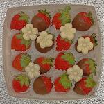 Клубника свежая 8 шт. Клубника в молочном шоколаде 8 шт. Цветочки из белого шоколада 6 шт. Состав молочного шоколада : Какао тертое Какао-масло Молоко сухое цельное Сахар тростниковый Натуральный ванилин Натуральный лецитин Содержание какао-продуктов не менее 33,6% Содержание молока - мин. 20,8 % Общее содержание жиров : 32, 2,%
