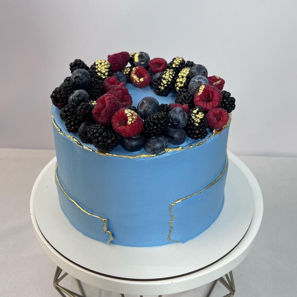 сочный шоколадный бисквит на бельгийском какао, пломбирный крем с хрустиком «орео» начинка для торта под ваш дизайн В украшении использованы ягоды малины, ежевики, голубики.