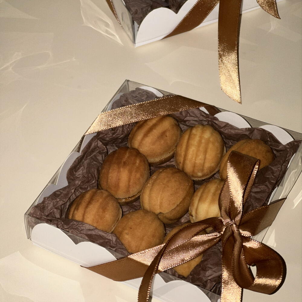 Орешки как из детства с вареной сгущёнкой и вкусом детской беспечности.