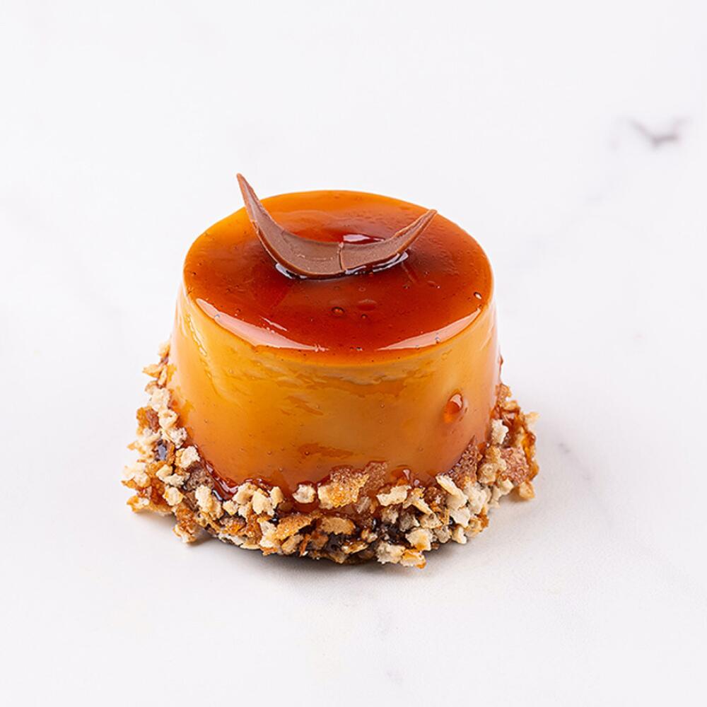 Настоящее современное пирожное снаружи и внутри. Нежный карамельный мусс. Небольшая деталь – шоколадно-ореховая начинка и основа из шоколадного бисквита по классическому рецепту. Замороженная продукция!