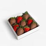 Ягоды клубники покрыты слоем молочного шоколада. Поверхность слегка хрустит, а внутри — нежная клубника. Сладкий вкус шоколада гармонично сочетается с лёгкой кислинкой ягоды