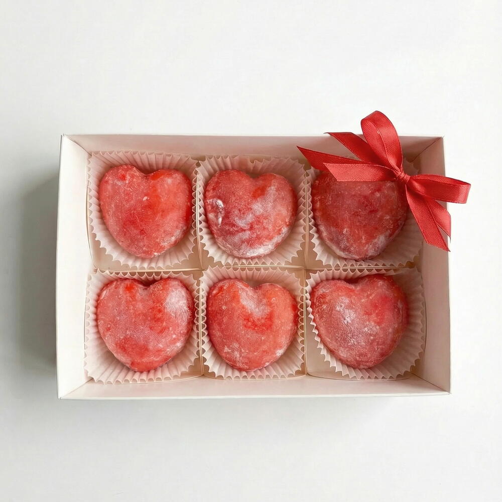 Подарочный набор «Моти-Сердца» 6 шт. Шесть безупречных моти-сердец с волшебным вкусом «Клубника-Пломбир» - это элегантный и лаконичный подарок для самых близких. Идеальный тандем сочной летней клубники и тающего сливочного пломбира, упакованный в нежнейшую рисовую оболочку. Мечтаете добавить в этот идеальный шестигранник новые грани? Набор можно легко персонализировать, включив в него другие популярные вкусы, но уже не в форме сердца. Просто укажите ваши пожелания в комментарии к заказу, и мы составим для вас идеальную сладкую композицию.