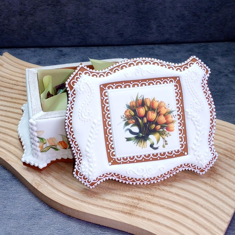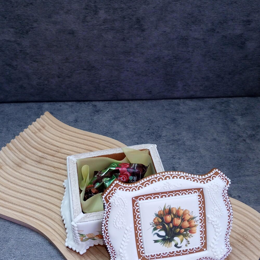 💐Пряничная шкатулка Желтые тюльпаны – Изысканный Подарок с Душой!💫 💐По-настоящему оригинальный и запоминающийся подарок на День рождения, 8 Марта или любой другой праздник! Почему Желтые тюльпаны – идеальный выбор?👇 💐Универсальность: Эта шкатулка станет прекрасным подарком для мамы, бабушки, сестры, подруги, коллеги или любимой женщине. Ее изысканный дизайн и ароматный пряничный вкус никого не оставят равнодушным. 💐Двойное удовольствие: Шкатулка не только порадует глаз и вкусовые рецепторы, но и послужит прекрасным тайником для небольшого сюрприза! Вы можете спрятать внутри ювелирное украшение, милую записку или наполнить ее другими любимыми сладостями. 💐Ручная работа и уникальный дизайн: Каждая шкатулка создается с любовью и вниманием к деталям. Шикарный букет с раскидистыми тюльпанам , придают ей неповторимый шарм и праздничное настроение. 💐Ароматное наслаждение: наполнит дом уютным ароматом имбиря и специй, создавая атмосферу тепла и праздника. Размеры и наполнение: -по основанию: 13х15 см, высота 8 см. -свободное место внутри (без наполнения): 7.5х9.5см, высота 4.5 см. 🔥Стоимость указана за шкатулку с конфетами на фото (100 гр конфет). Это готовое решение для тех, кто ценит время и хочет получить полноценный подарок. 🔥Важно: В наличии нет! Только под заказ. 🫶Подарите своим близким не просто подарок, а целую историю, заключенную в ароматной пряничной шкатулке Желтые тюльпаны! Это будет незабываемый сюрприз, который запомнится надолго.🤗