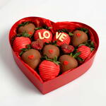 клубника, белый и молочный шоколад: сахар, масло какао, сухое цельное молоко, какао тертое, эмульгатор соевый лецитин, ароматизатор натуральный ваниль. сахарные cердечки, сублимированная малина, пищевой краситель.