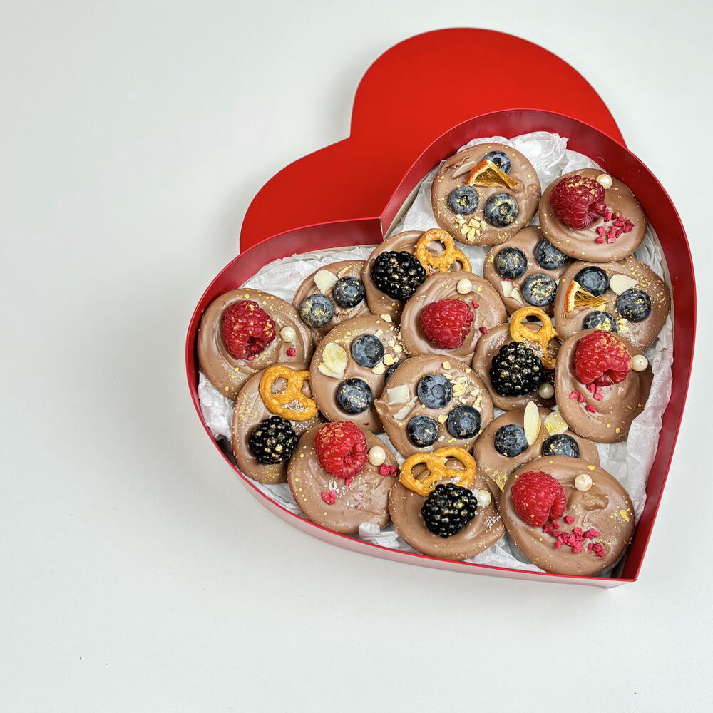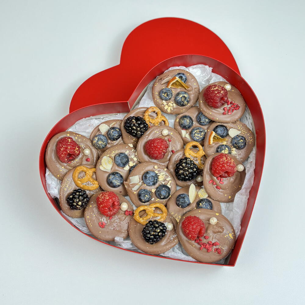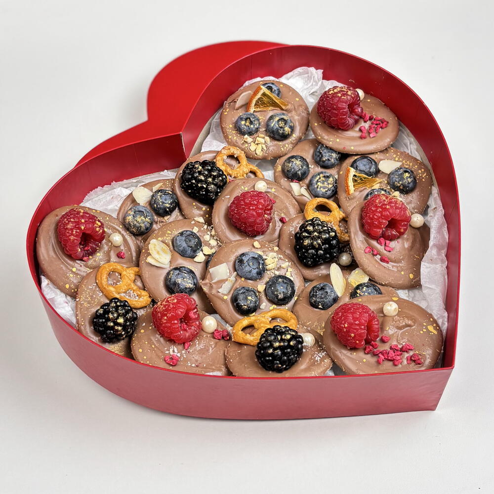 Шоколад ручной работы с ягодами микс в сердце