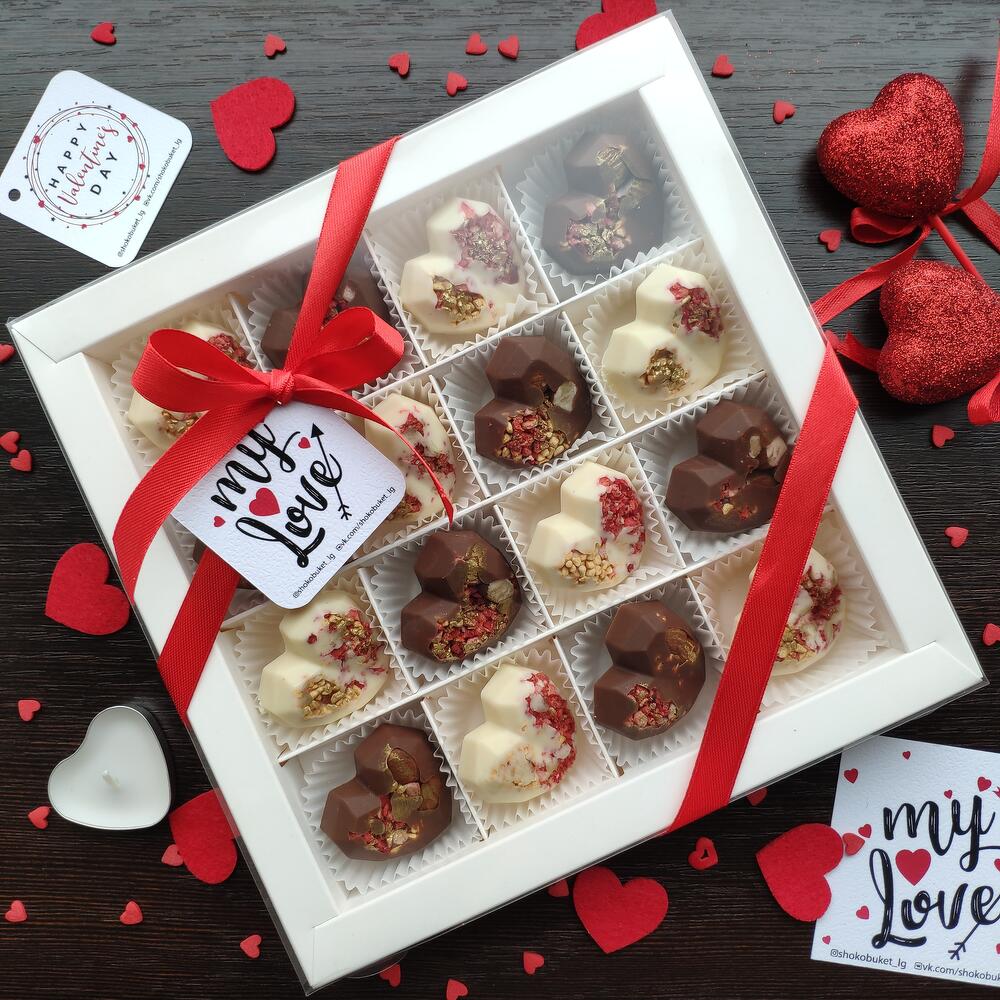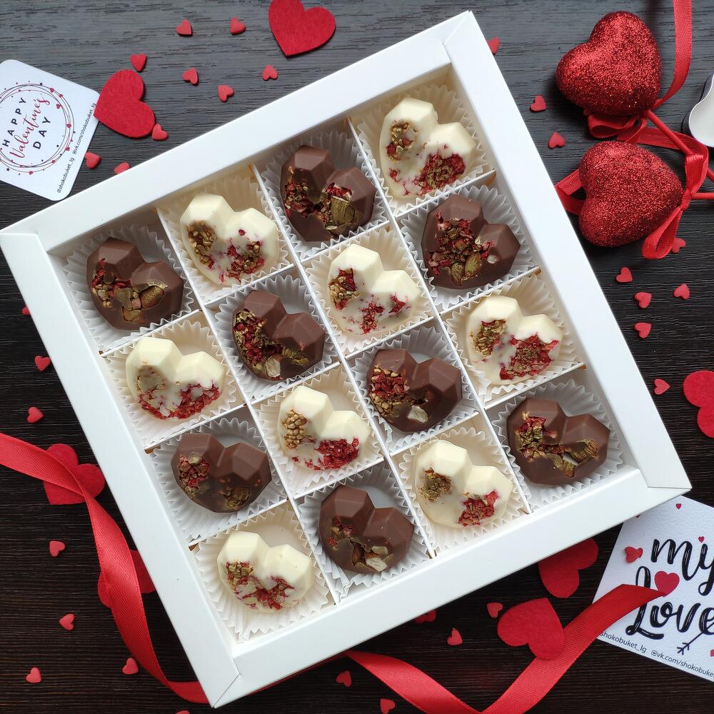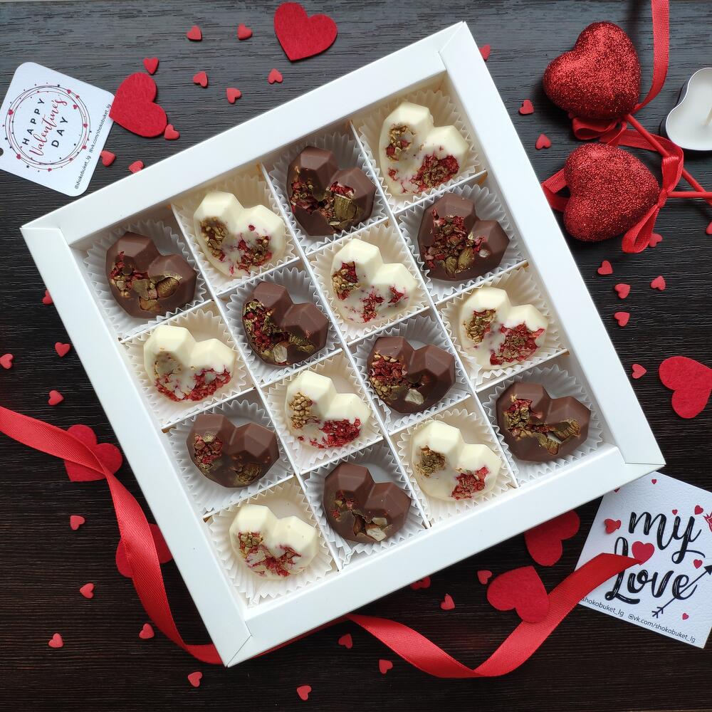 Шоколадный набор "Сердца" 16шт. с различными начинками и декором