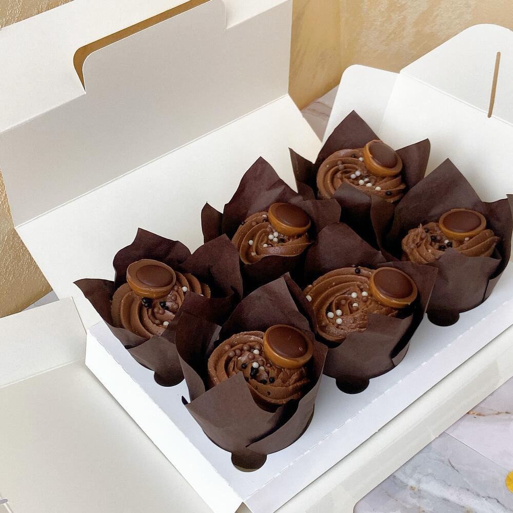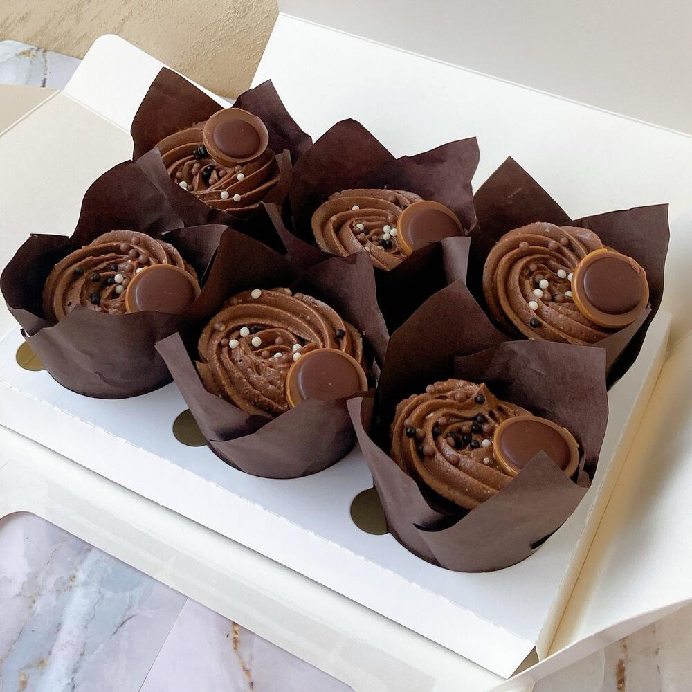 Капкейки это как торт, только порционное пирожное.🧁С начинкой и кремом. Ультра мега шоколадный бисквит, влажный и сочный, с тягучей карамелью и соленым арахисом, под творожно сырной шапочкой с хрустящими шариками и шоколадной ириской. Подойдет в подарок или просто так к чаю/кофе, дома или на работе. Капкейки упакованы в коробку с атласной лентой и пакет. Вы всегда можете добавить к заказу свечи и открытку. Дарите сладкие эмоции вместе с Baker Liliya 🌺