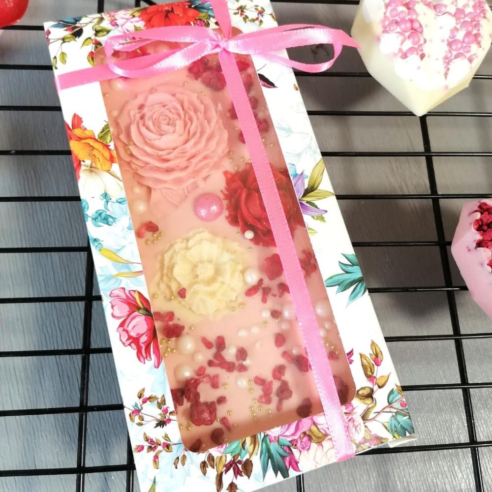 Очаровательный сюрприз вашим сладкоежка, этот десерт создан в авторской мастерской, из бельгийского шоколада, украшенного шоколадными цветами, сублимированной малиной и криспи. Это не только очень вкусно, но и очень красиво. При желании можно заказать десерт как отдельный подарок, а можно приобрести десерт в дополнение к букету цветов или мягкой игрушке. Поверьте, ни одна девушка не устоит перед таким сюрпризом.