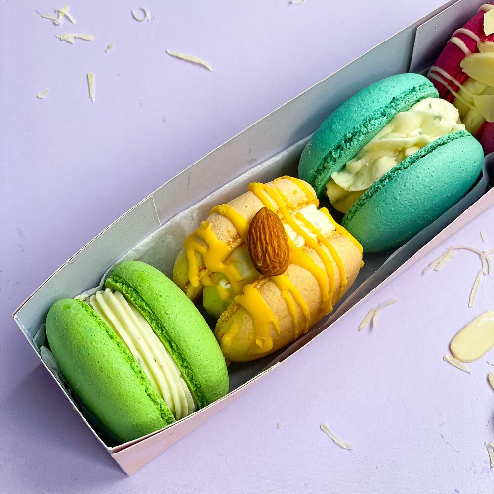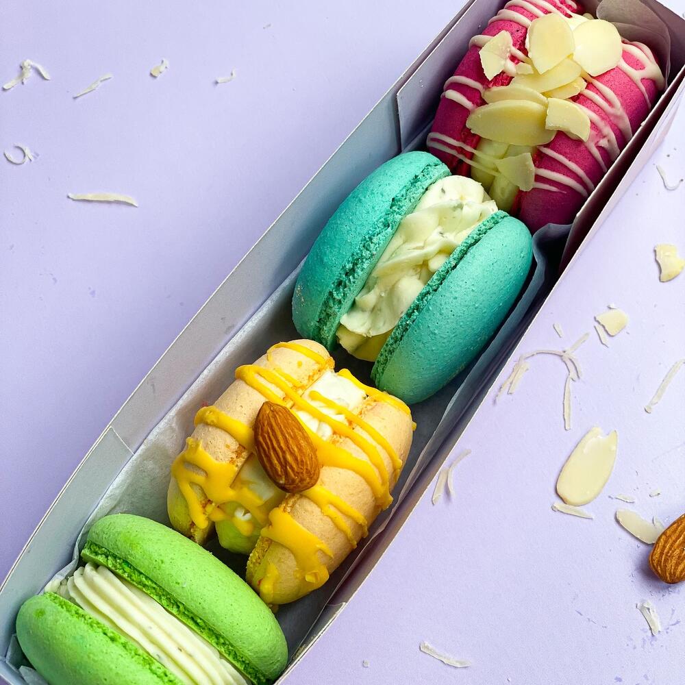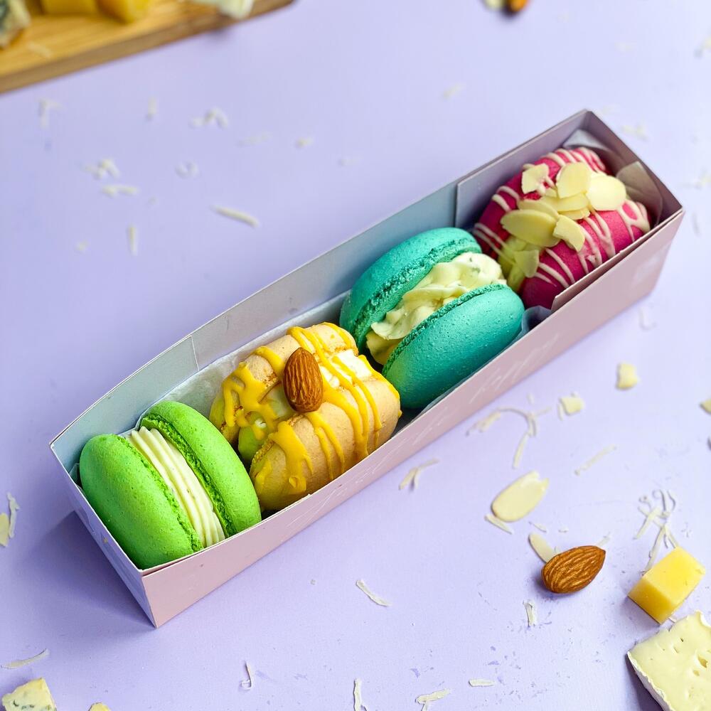 Коробочка макарон ассорти из 4-х макарон с сырными вкусами 🧀 НЕ СОДЕРЖИТ Глютен. Макарон со вкусами: 🍍Горгонзола-ананас - 1 шт. 🍐ДорБлю-груша - 1 шт. 🥞Бри-инжир - 1 шт. 🧀Пармезан-абрикос - 1 шт. Я готовлю большие макарон в которых МНОГО начинки 😍 🎁Красивая коробочка, яркая лента, открытка, праздничное конфетти и крафт-пакет уже включены в стоимость. Мы сделаем красивое оформление 👌 🔆Атласная лента, открытка и конфетти могут отличаться от представленных на фото. Если у Вас есть предпочтения по цветовой гамме – просто напишите в чате после оформлении заказа и я учту Ваши пожелания. ❗️Срок хранения 72 часа в холодильнике. Настоящие макарон, чтобы вам было вкусно 🌺