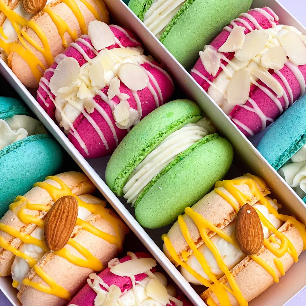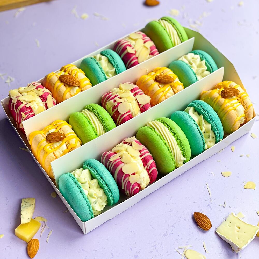 Коробочка макарон ассорти из 15-ти макарон с сырными вкусами 🧀 НЕ СОДЕРЖИТ Глютен. Макарон со вкусами: 🍍Горгонзола-ананас 🍐ДорБлю-груша 🥞Бри-инжир 🧀Пармезан-абрикос Я готовлю большие макарон в которых МНОГО начинки 😍 🎁Красивая коробочка, яркая лента, открытка, праздничное конфетти и крафт-пакет уже включены в стоимость. Мы сделаем красивое оформление 👌 🔆Атласная лента, открытка и конфетти могут отличаться от представленных на фото. Если у Вас есть предпочтения по цветовой гамме – просто напишите в чате после оформлении заказа и я учту Ваши пожелания. ❗️Срок хранения 72 часа в холодильнике. Настоящие макарон, чтобы вам было вкусно 🌺