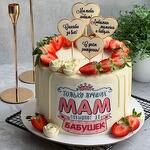 Тортик для любимой бабули. В декоре ягоды, розочки из шоколада, сахарная печать. Таблички можно заменить на ваши фразы - писать в комментариях. Можно добавить цифру - просьба указать. Начинка на выбор: ферреро сникерс ваниль / вишня ваниль / клубника (по умолчанию) малина в шоколаде вишня в шоколаде