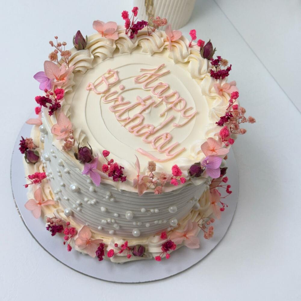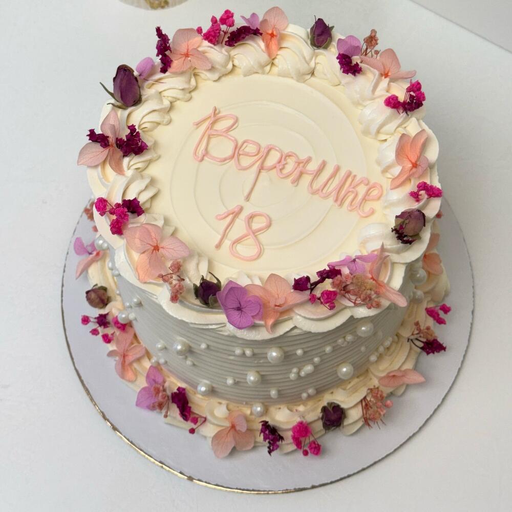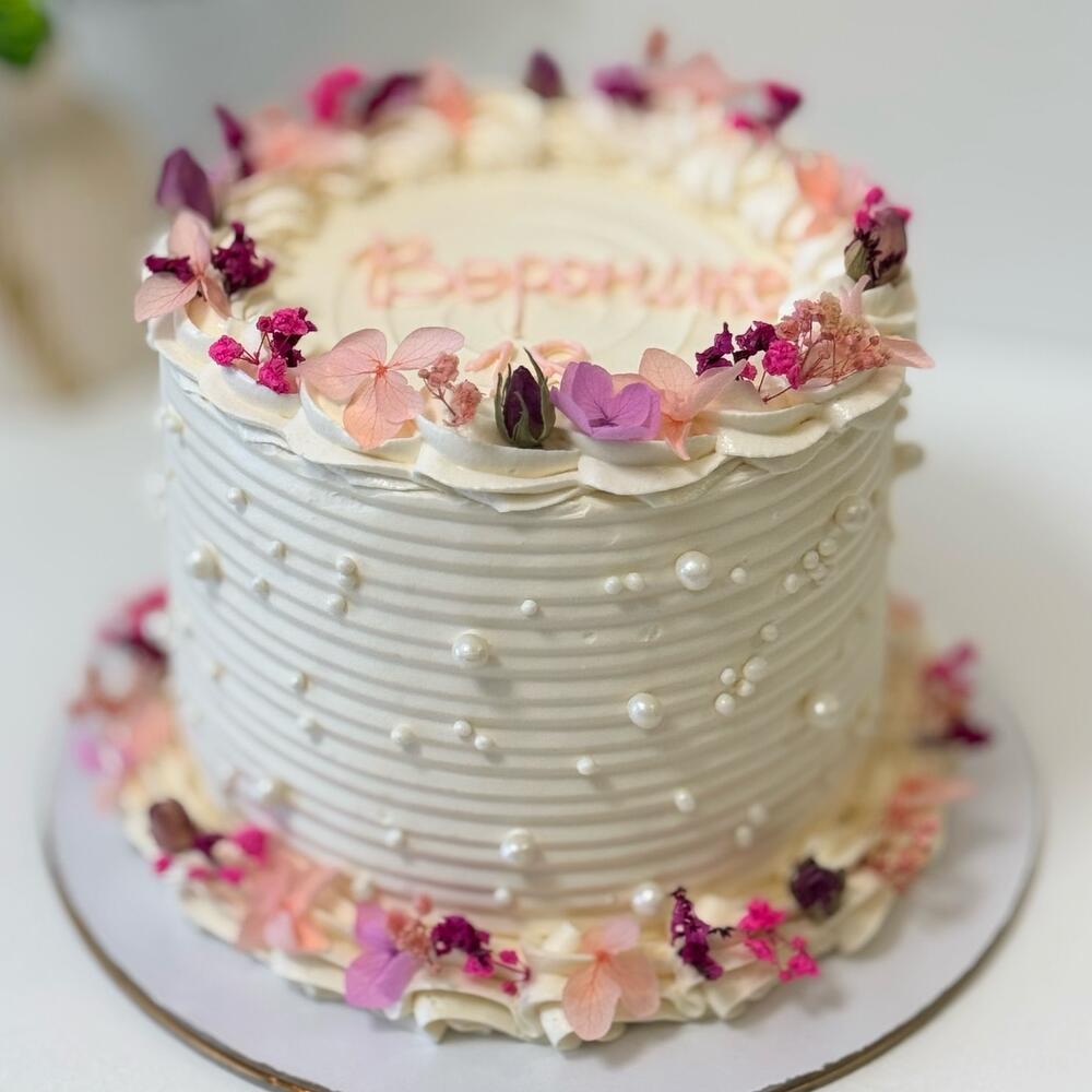 Весенний торт в стиле ламбет — это настоящая симфония нежности и утонченности, которая станет украшением любого праздника. Его многослойная структура, выполненная из легкого бисквита, пропитанного ароматным сиропом, наполняет каждый кусочек воздушностью и свежестью. Декор этого торта — истинное произведение искусства. В качестве украшения используются сухоцветы, которые придают ему особый шарм и женственность. Нежные оттенки лаванды, бледно-розовые бутоны и золотистые колоски создают гармоничное сочетание, которое напоминает о первых весенних днях. Каждая деталь продумана до мелочей: сухоцветы аккуратно располагаются по краям торта, словно обрамляя его в нежный венец, а несколько ярких акцентов добавляют живости и радости. Такой торт не только радует глаз, но и дарит незабываемые вкусовые ощущения. Он идеально подходит для весенних праздников, свадеб или просто уютных встреч с близкими. С каждым кусочком вы погружаетесь в атмосферу весны, наполненную ароматами цветов и теплом солнечных лучей.