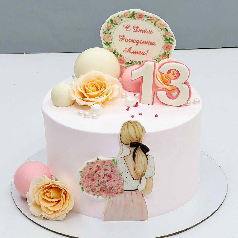 Торт для девочки с шарами и розами