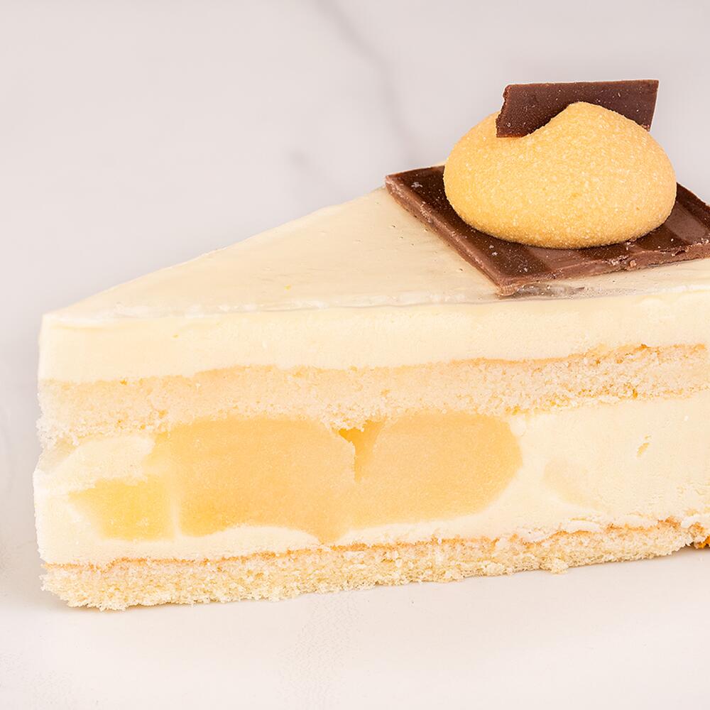 Ароматный и легкий торт. Кусочки груши, заварной крем и нежнейший сливочный мусс. Бисквит Джоконд служит отличным украшением этого торта. Замороженная продукция!