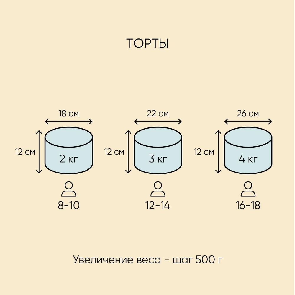Торт от 2 кг с начинкой на ваш выбор! Напишите о выбранной начинке в чате или мы приготовим торт с начинкой, указанной в составе - красный бархат. Шаг прибавки веса 500г. За дополнительный вес торта потребуется доплата. По готовности вы получите фото заказа, и после вашего согласования мы отправим его в доставку.