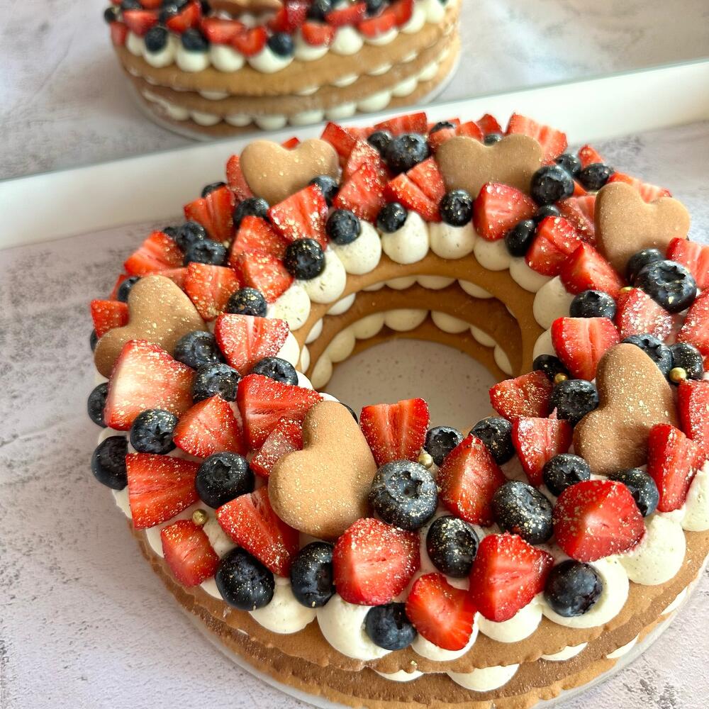 Медовик-отличная классика! Предлагаем Вам попробовать необычный вариант этого десерта-открытый медовик❤️ Торт нежный и очень вкусный☺️ Он станет отличным подарком для Ваших любимых🥰 Базовая начинка: клубника-ваниль🍓 Если Вас интересует какая-то другая начинка или же дизайн, то Вы можете написать нам через кнопку «Чат» Начинки: 1) клубника-ваниль 2)малина-ваниль 3)вишня-ваниль 4)карамель с бананами 5)шоколадный ганаш 6)карамель с арахисом